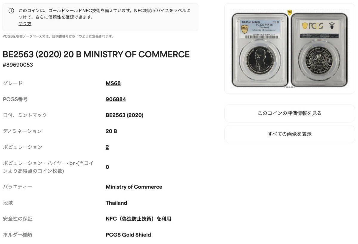 ★金終 【PCGS MS68 ★P社TOP最高鑑定】BE2563 (2020) タイ王国 商務省 20B銀貨 完全未使用 //世界コイン 古銭 貨幣【決済期限火曜日】