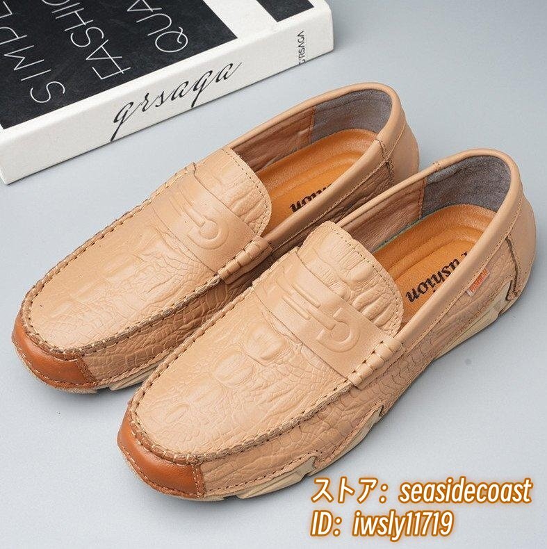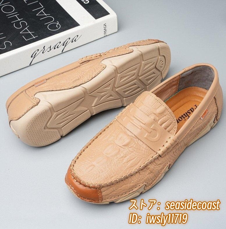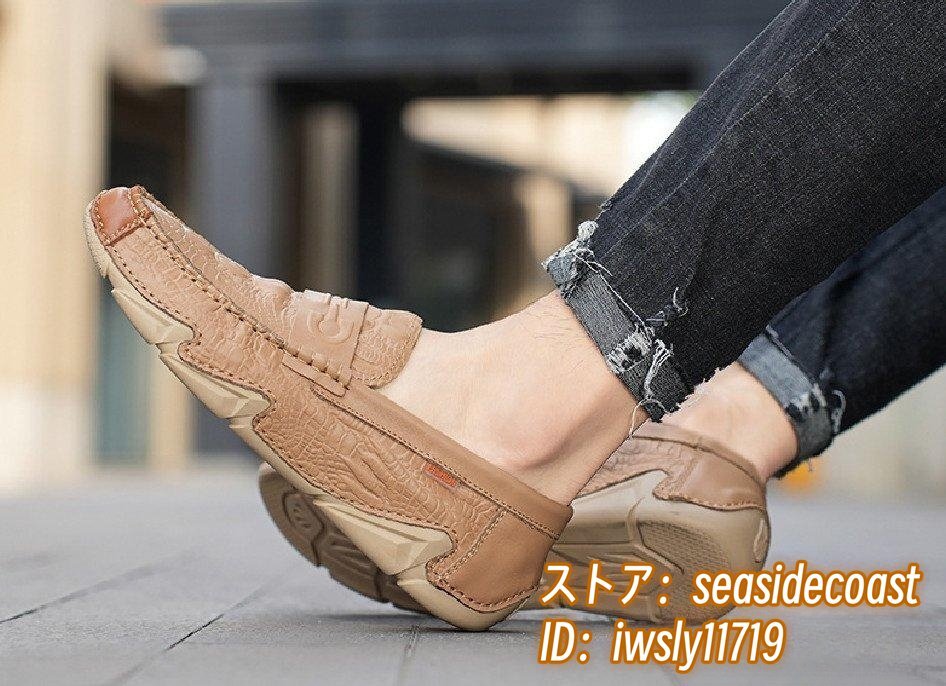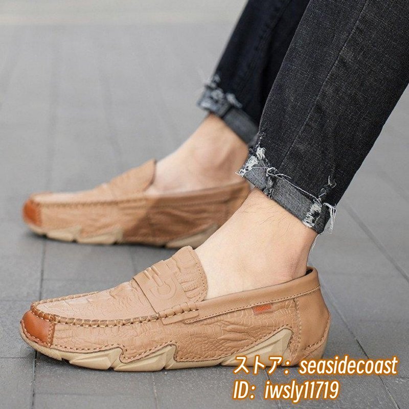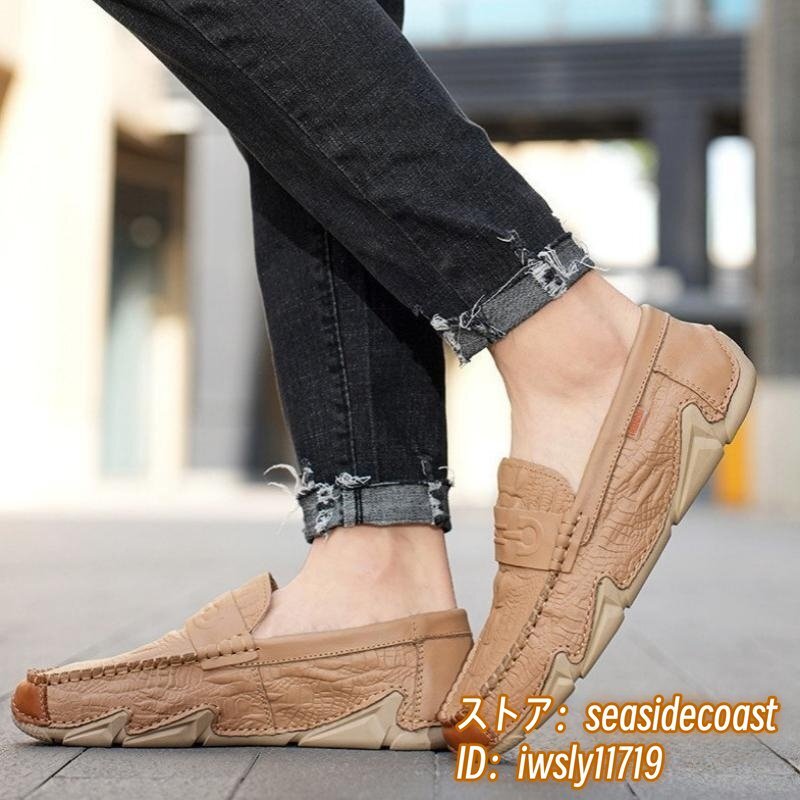 新品特売◆ローファー メンズ スリッポン 牛革 切替 配色 ビジネスシューズ レザーシューズ ドライビングシューズ 紳士靴 ブラウン 26.0cm