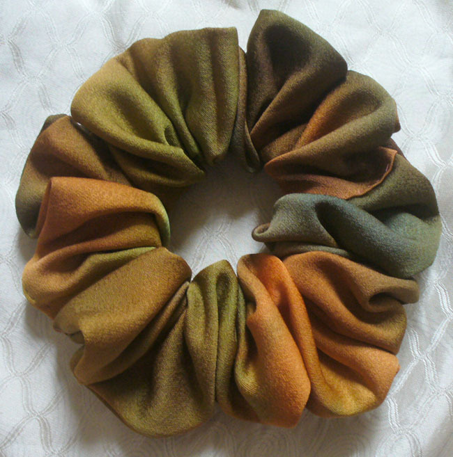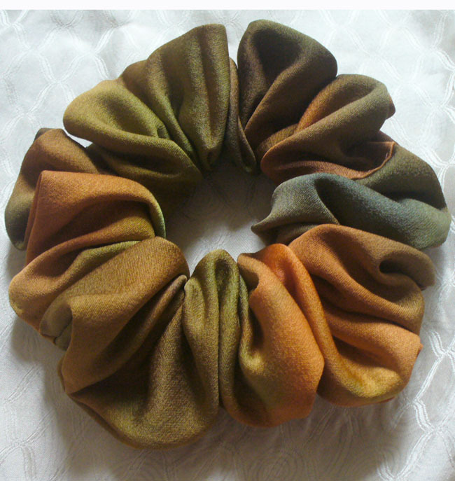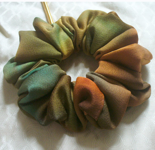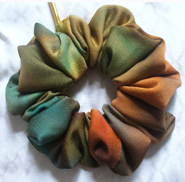 最後 ゴム交換可能 色遊び 暈し抽象文様 フリル フリル シュシュ 絹 リメイク 和柄 手縫い ハンドメイド リメイク 着物 和物
