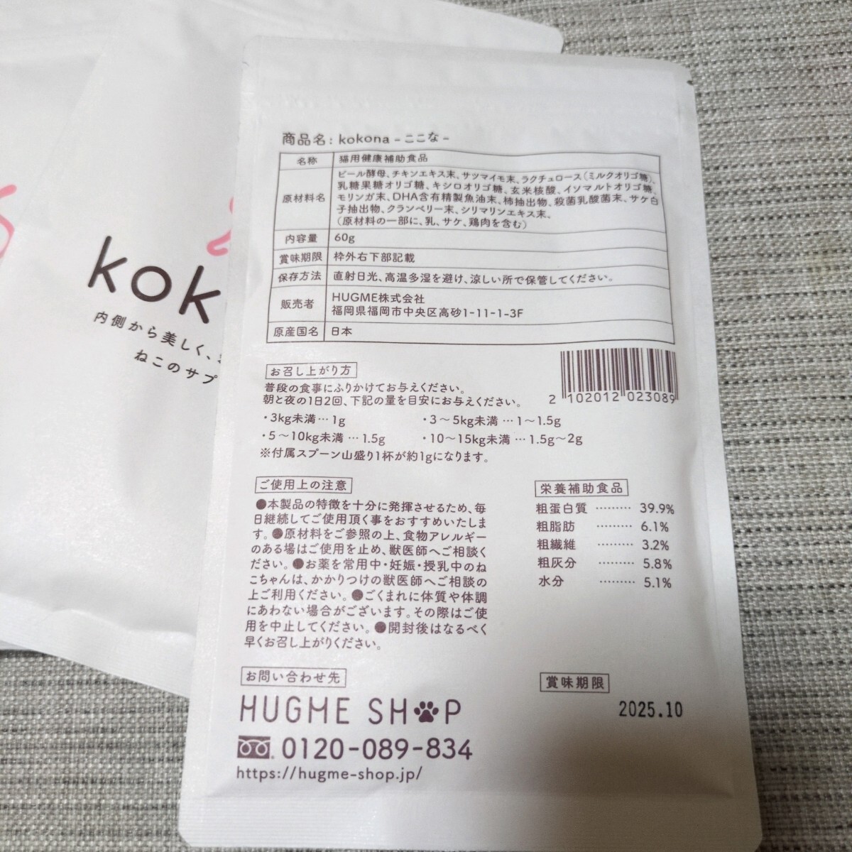 こちらは猫用の健康補助食品「kokona(ここな)」です。