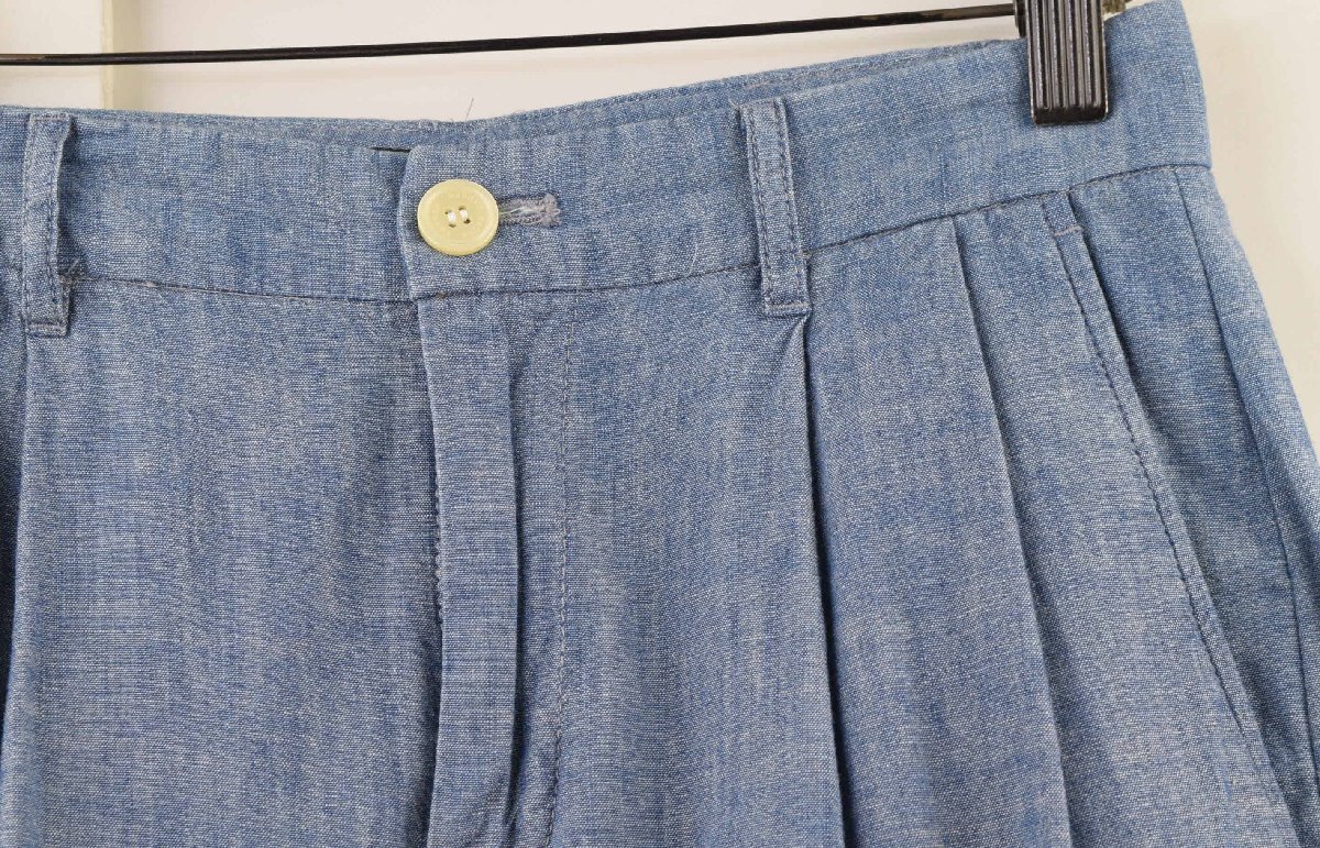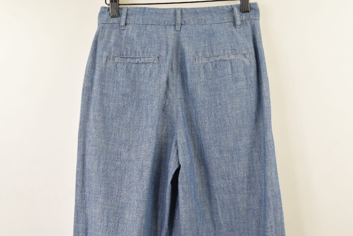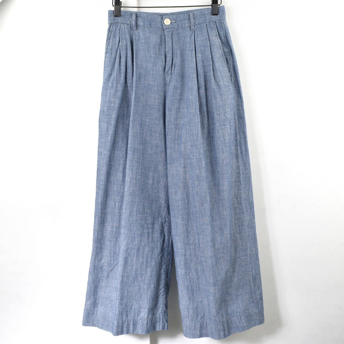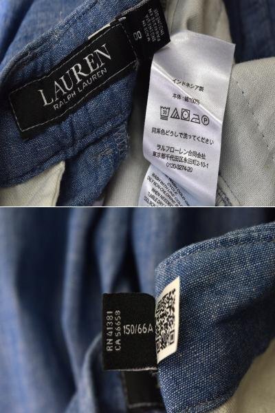 1340-25P0216★Ralph Lauren ラルフローレン★柔らかコットン ギャザー入りワイドストレートパンツ 150/66A シャンブレー ブルー