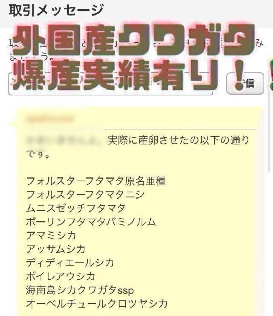 昨年はシカ、フタマタ、ホペイ、ニジイロ、他多数 産卵実績多数あり。落札者様から報告嬉しく思います。