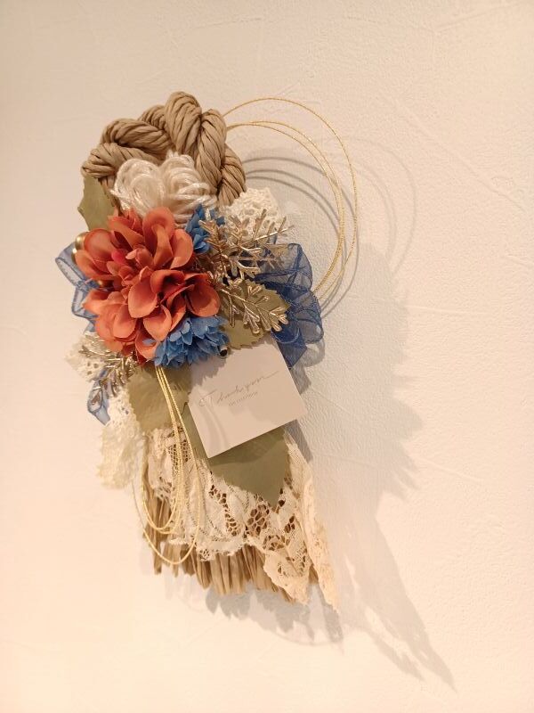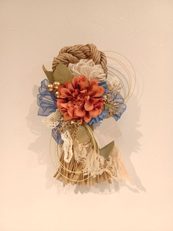 ナチュラルな風合いをもつ造花を使用した和と洋を取り入れたしめ縄リースです。