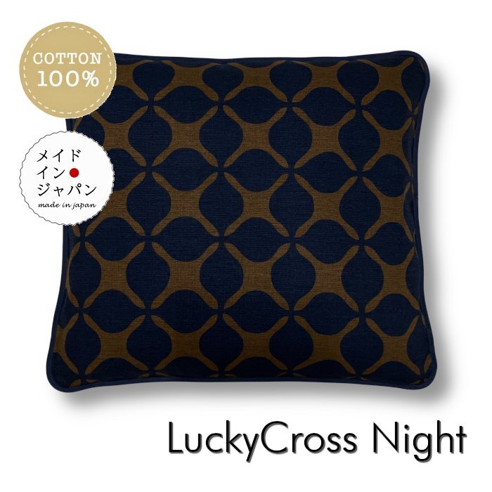 銘仙判座布団カバー ラッキークロス ナイト 紺茶 ざぶとんカバー 55×59cm 綿100%