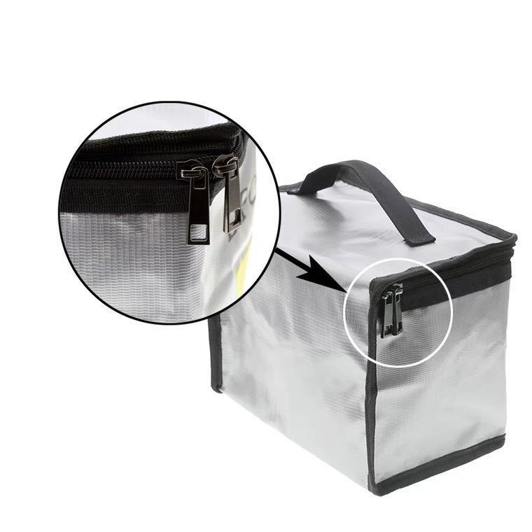 これは機能不良のリポパックを誤って充填することによって引き起こされた火災を止めて封じ込めるために設計された耐火バッグです。