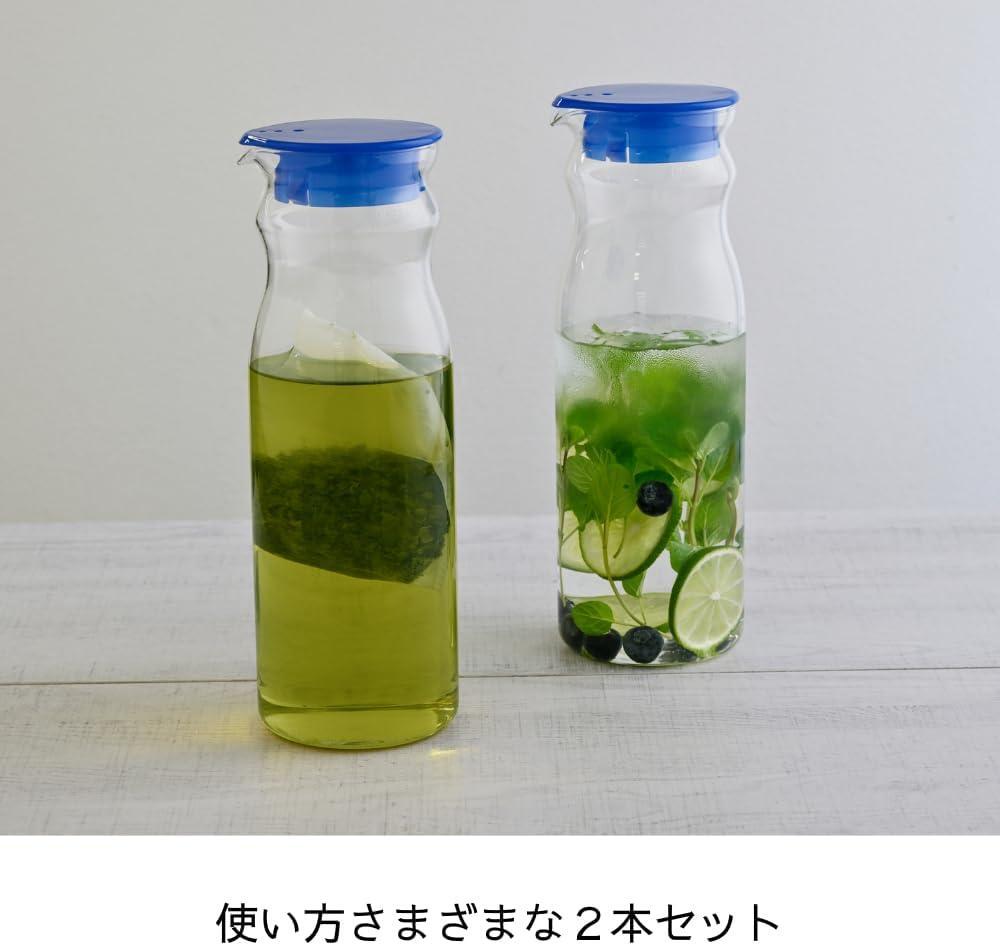 HARIO(ハリオ) 耐熱フリーポット マイン 冷水筒 2本セット 実用容量1200ml 透明 ブルー 耐熱ガラス製 熱湯・食洗器