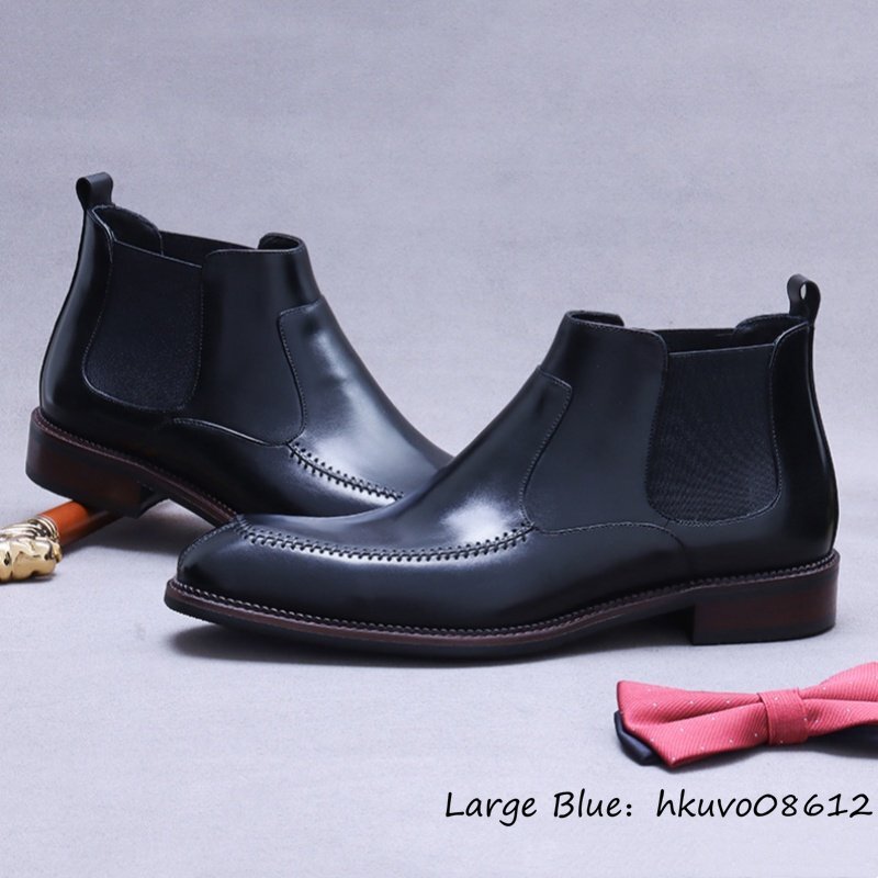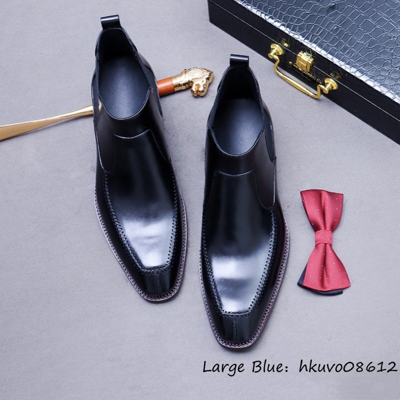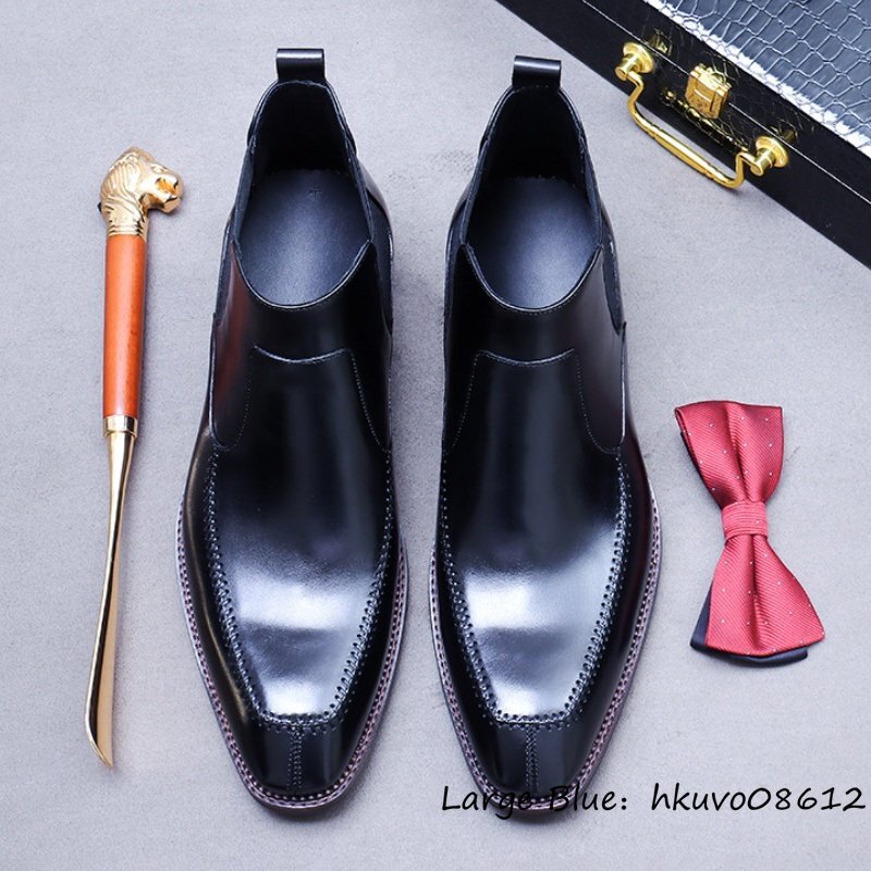 定価13万超*マーティンブーツ 最上級 メンズ 本革 ハイカット ビジネスシューズ 職人手作り ショートブーツ 高級牛革 皮靴 ブラック 24.5cm