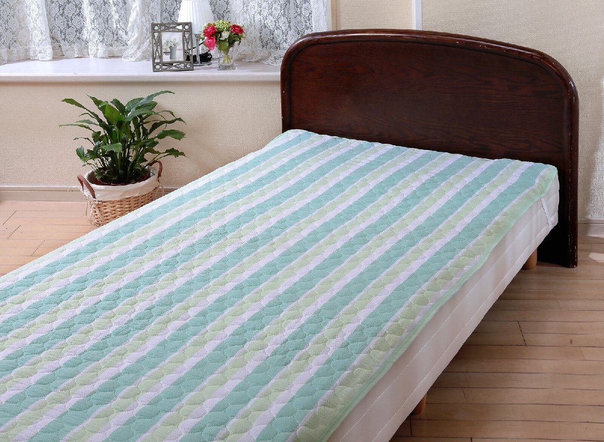 即決可@新品吸湿速乾しじら織敷パッド ダブル グリーン | ||||||||||||