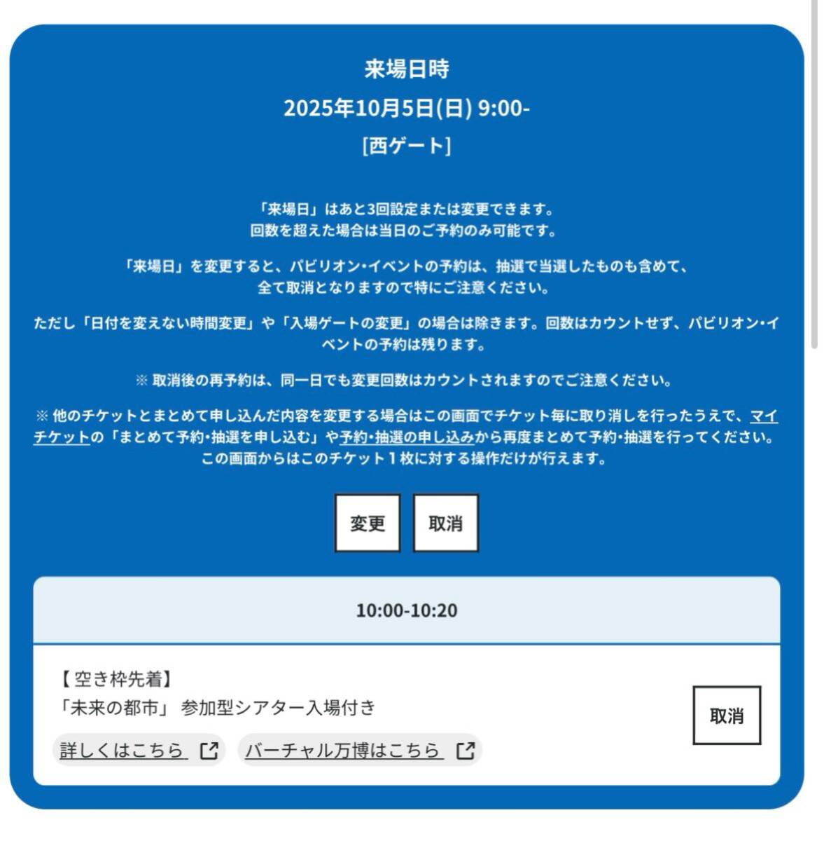 「未来の都市」参加型シアター入場付き予約済み 10月5日(日) 西ゲート9時 EXPO2025 大阪・関西万博チケット 1日券 大人1名