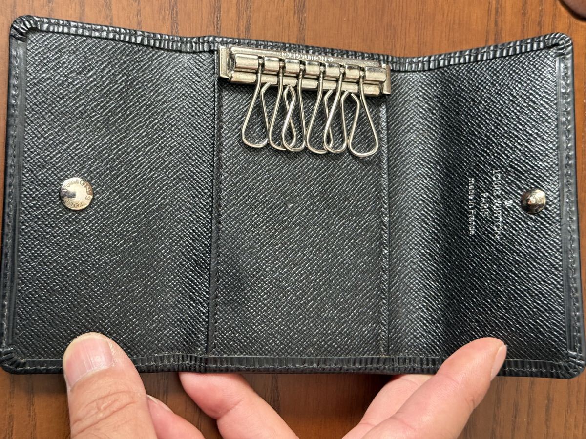 ブラックレザーのキーケース、6つのキーリング付き。