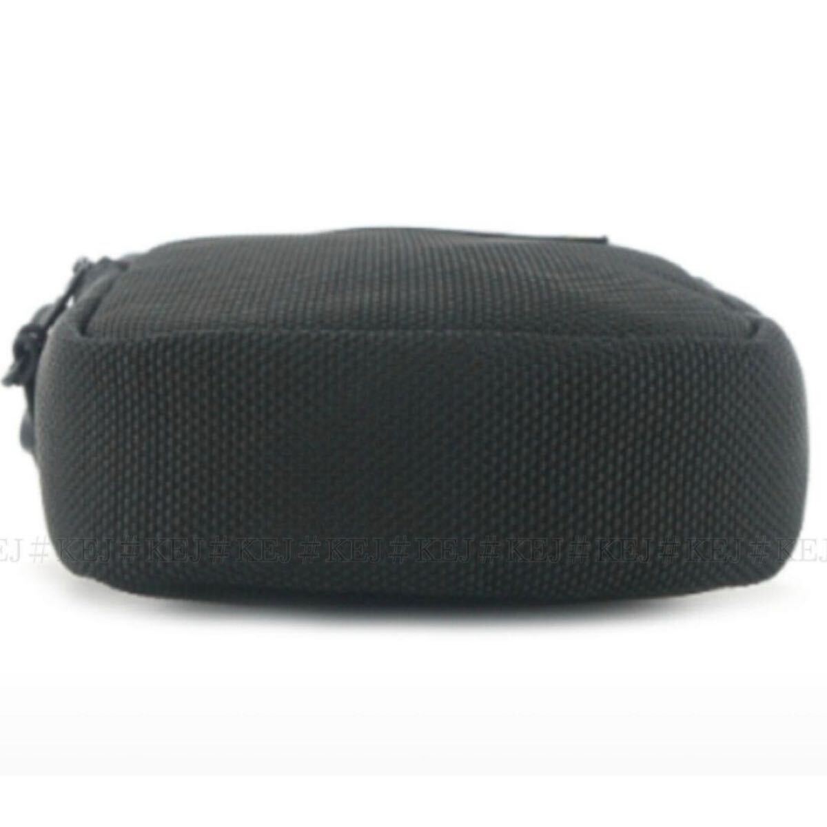 メインポケットはダブルファスナー仕様となります。メインポケット内には仕切りがあり、鍵などの小物の収納に便利です。また生地の内側には厚めのクッション材を入れており、収納アイテムを衝撃から保護します。長財布 はサイズにもよりますが入りません。
