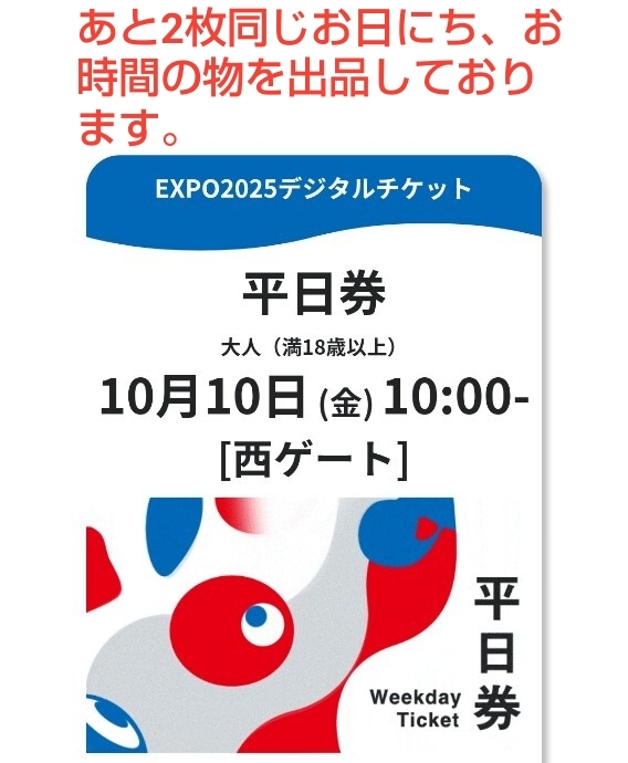 あと2枚同じお日にちお時間で出品しております。