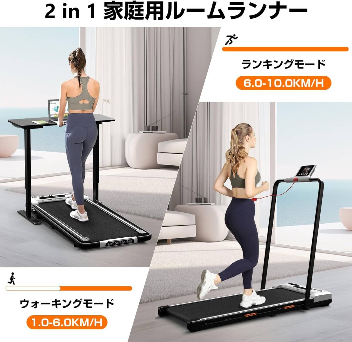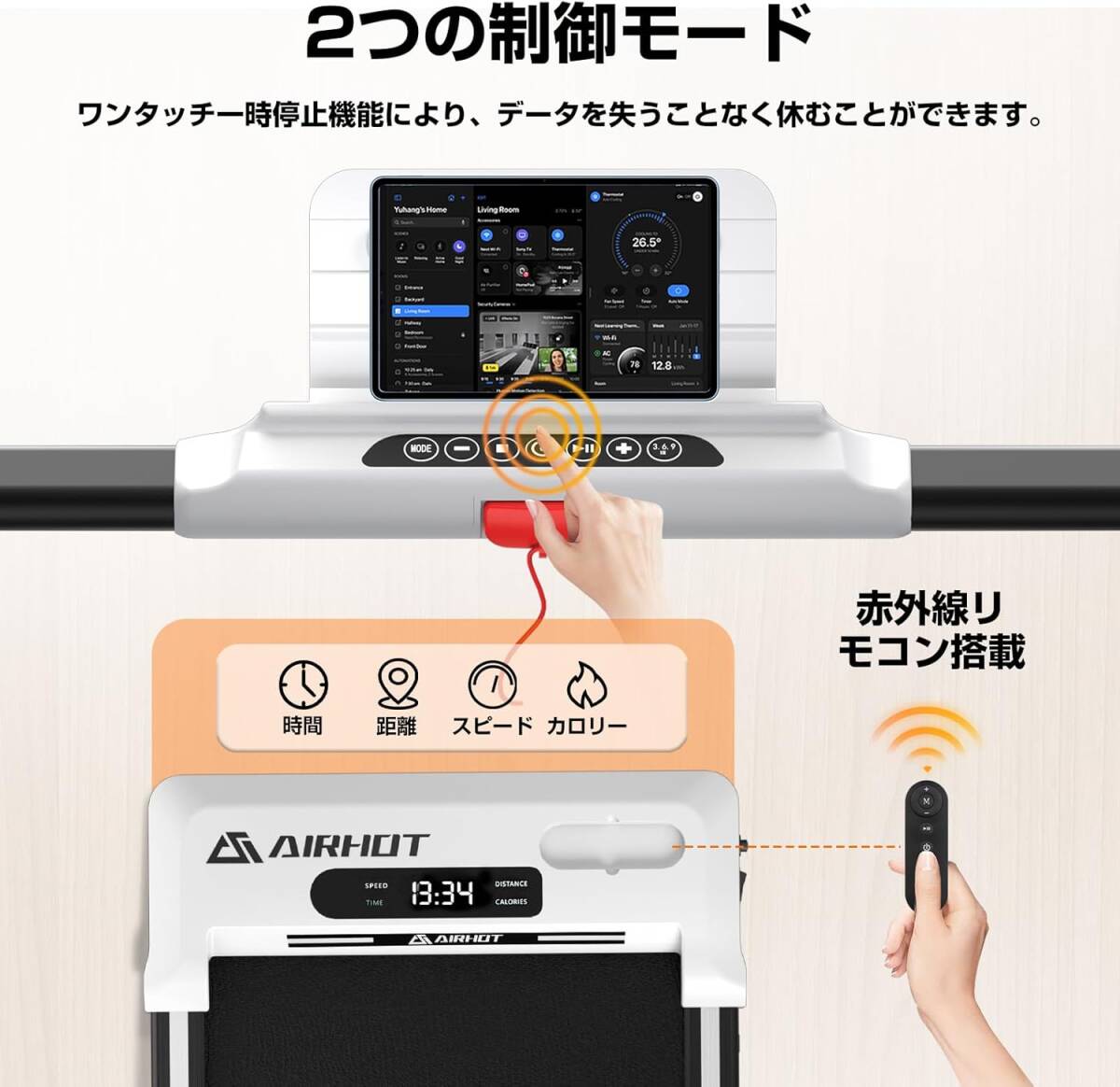 ホワイト色 手すり付き ルームランナー-AIRHOT ウォーキングマシン MAX 6km/h ランニングマシン MAX 10km/h トレーニングマシン