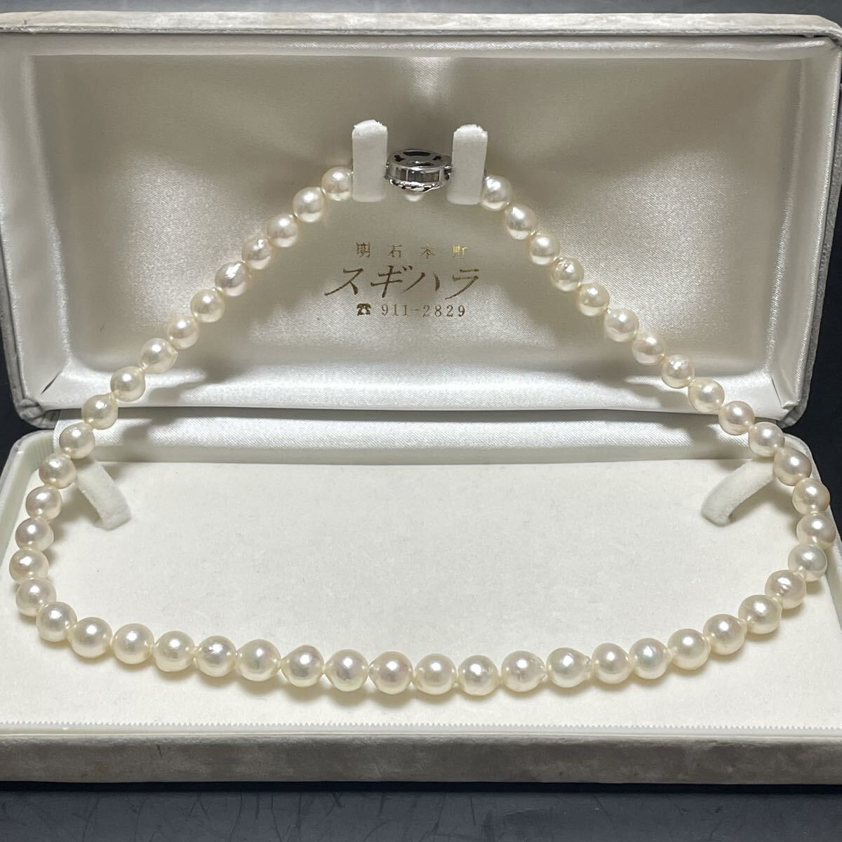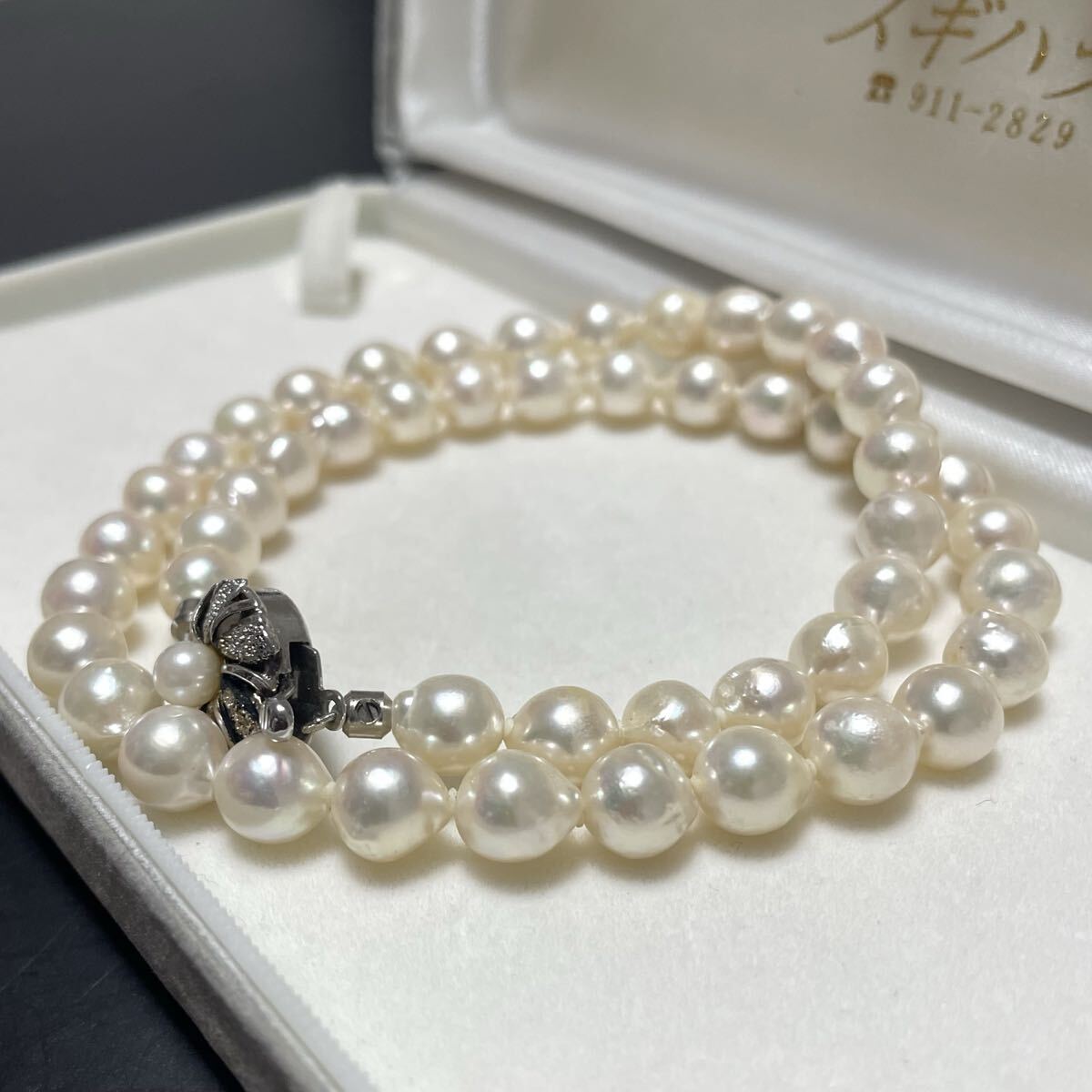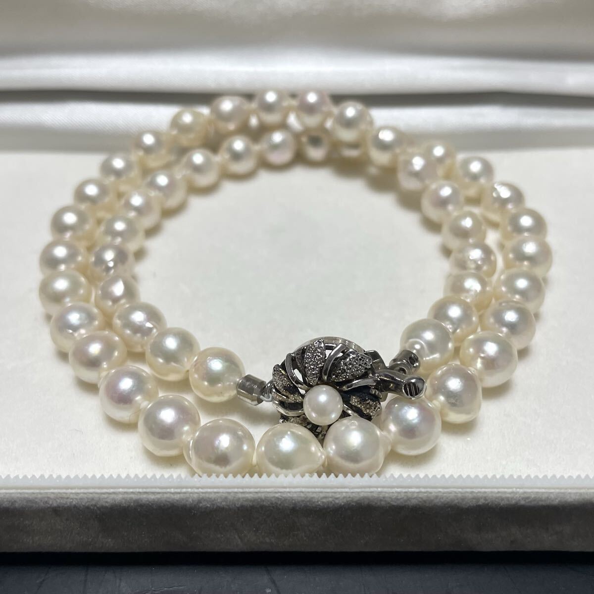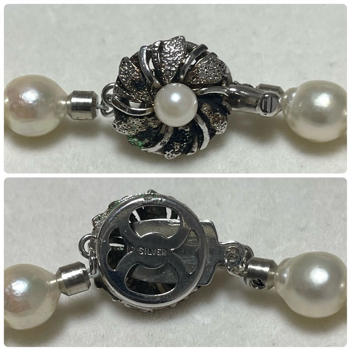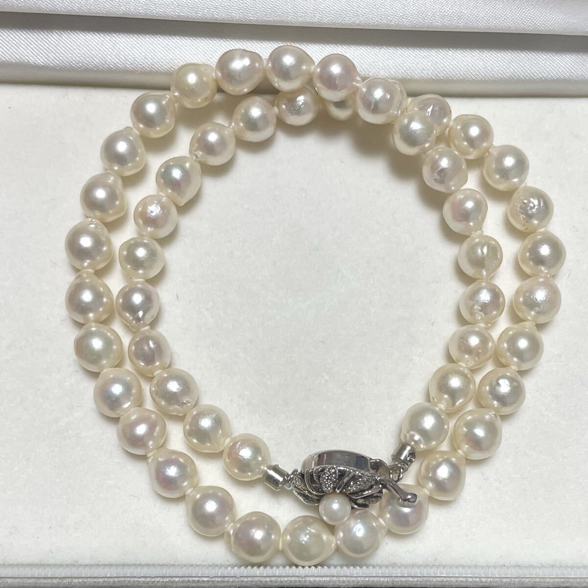 テリ強 花珠級 バロック 約7.5-8.0mm 約44cm あこや真珠 本真珠 ネックレス pearl パール SILVER刻印 オーロラ干渉色 シルバー金具 310