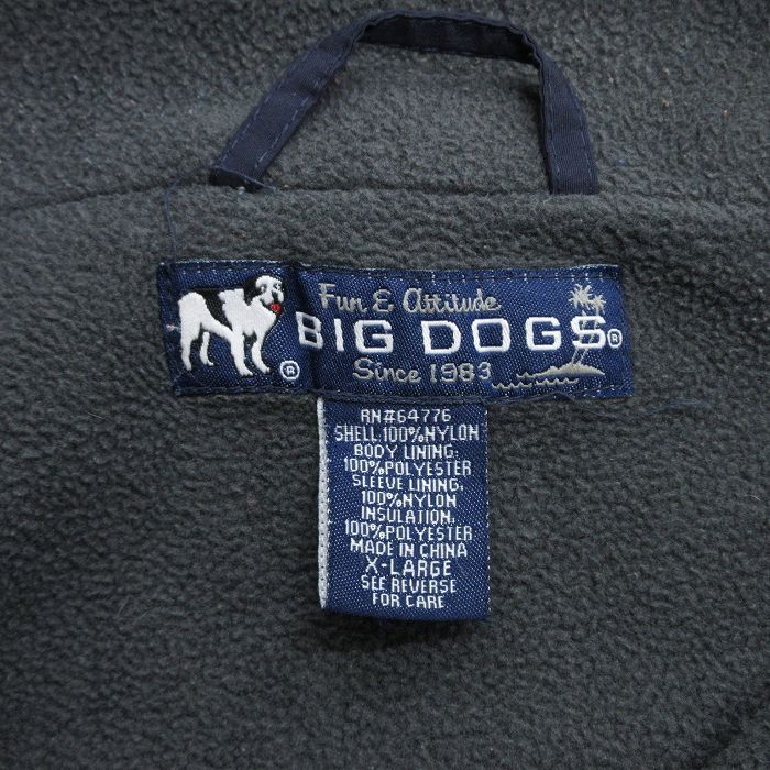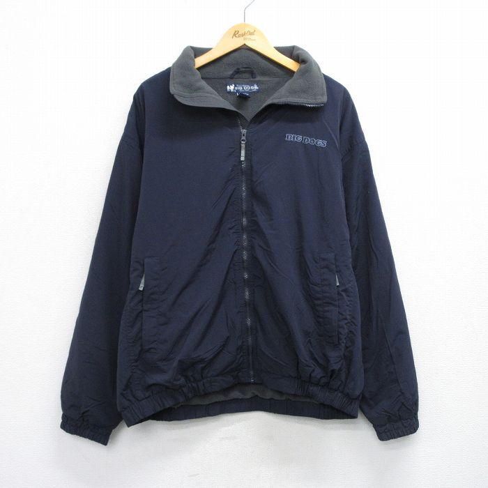 【商品名】 XL★古着 ビッグドッグス 長袖 ナイロン ジャケット メンズ ワンポイントロゴ 大きいサイズ 紺 内側フリース
