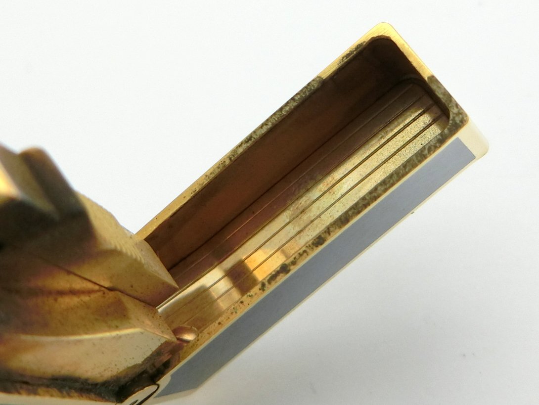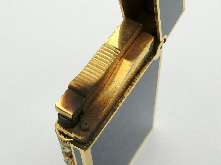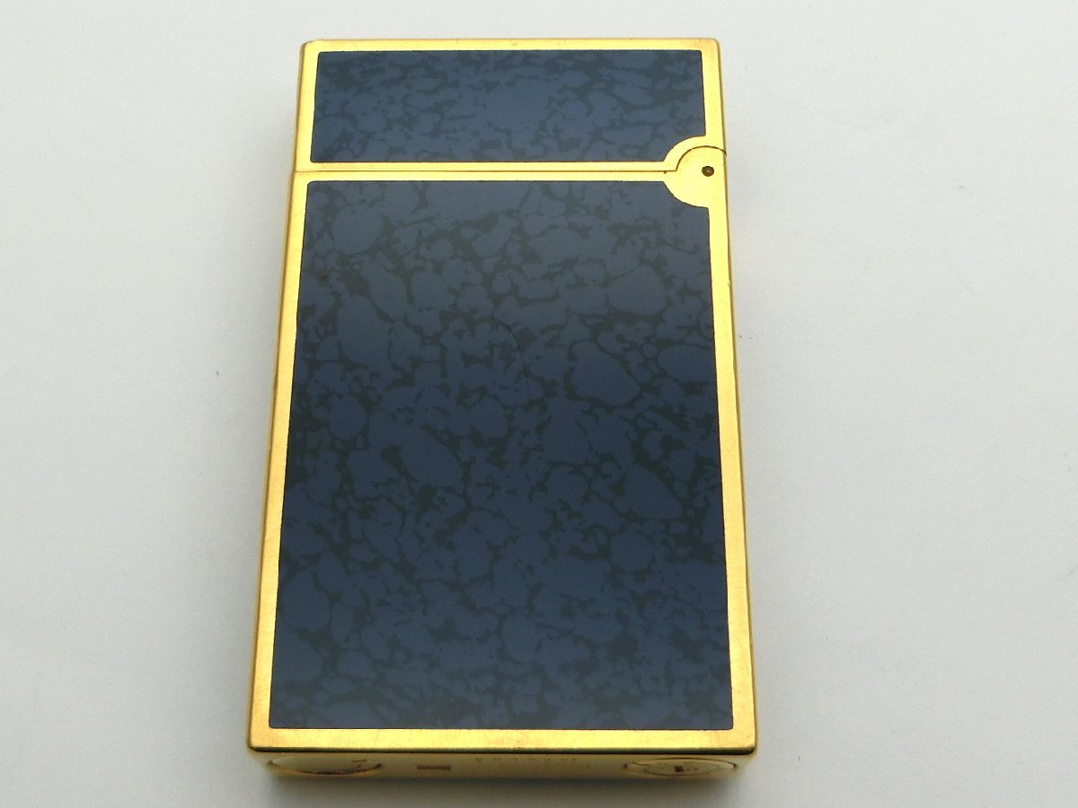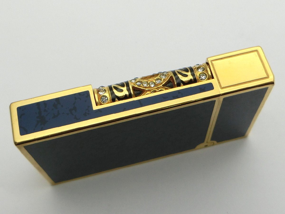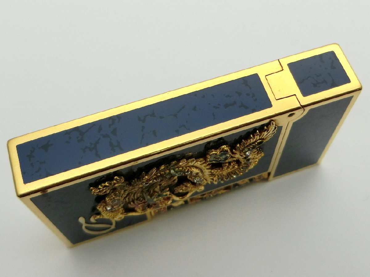 ガスライター S.T.Dupont デュポン ライン2 ラージ ゴールドガス 金ガス 龍 ラインストーン ネイビー系×ゴールド 着火未確認 1円~ N0241c