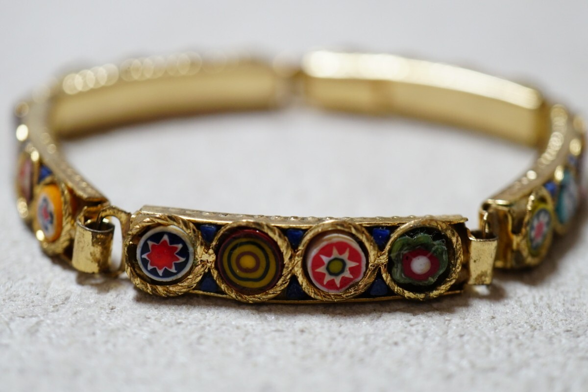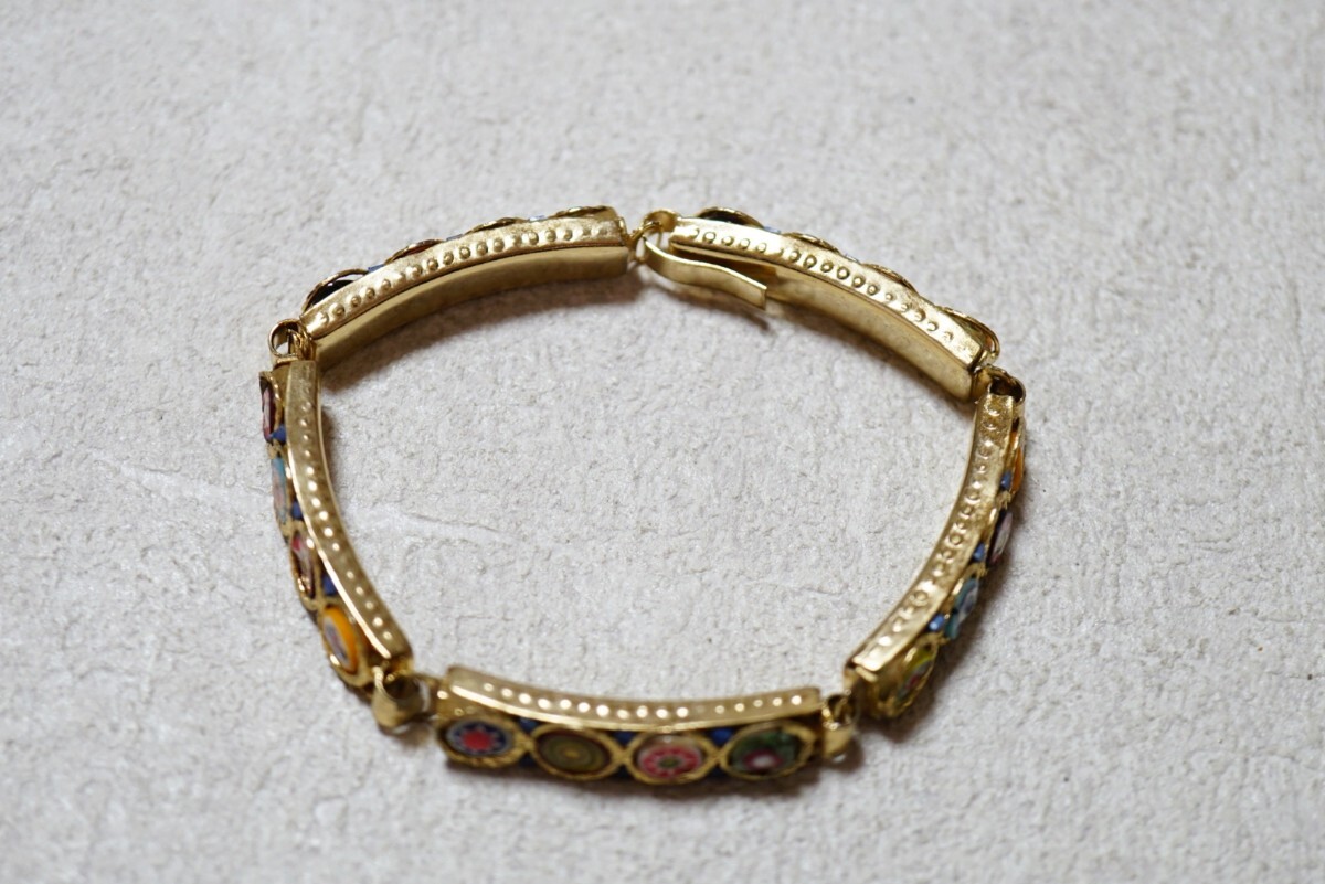 181 イタリア 海外製 マイクロモザイク ゴールドカラー ブレスレット ヴィンテージ アクセサリー アンティーク ガラス細工 装飾品