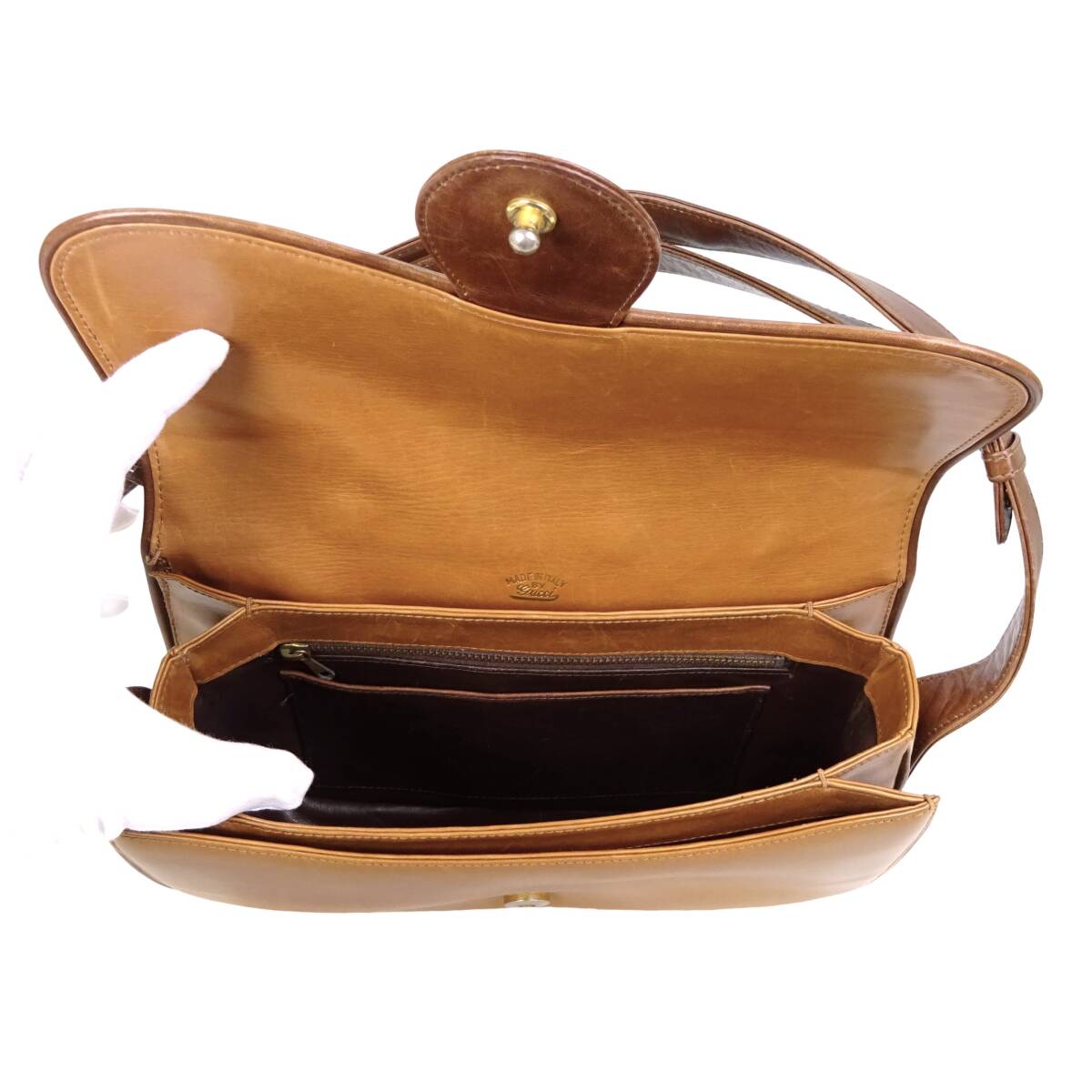 本物■グッチ■ヴィンテージ GG バックル キャメル ブラウン レザー ゴールド ショルダーバッグ ハンドバッグ