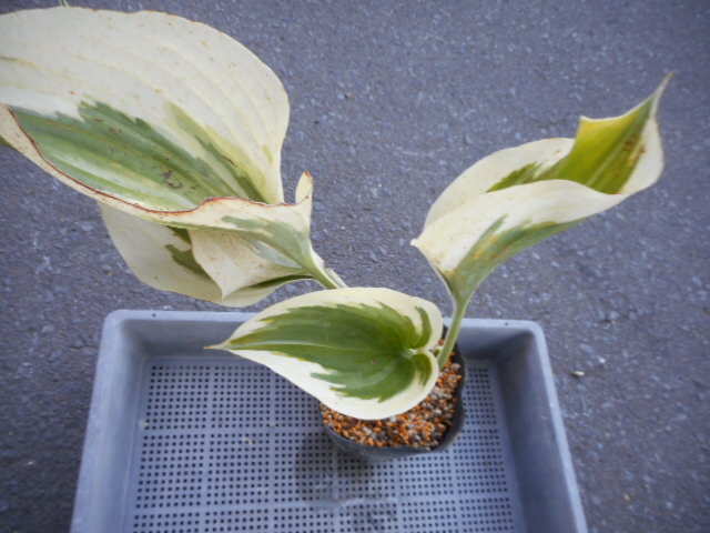 綺麗な深覆輪、堀上植え込み苗になります。来季の芽は株元にできています、時期的な葉の変化はご理解ください。