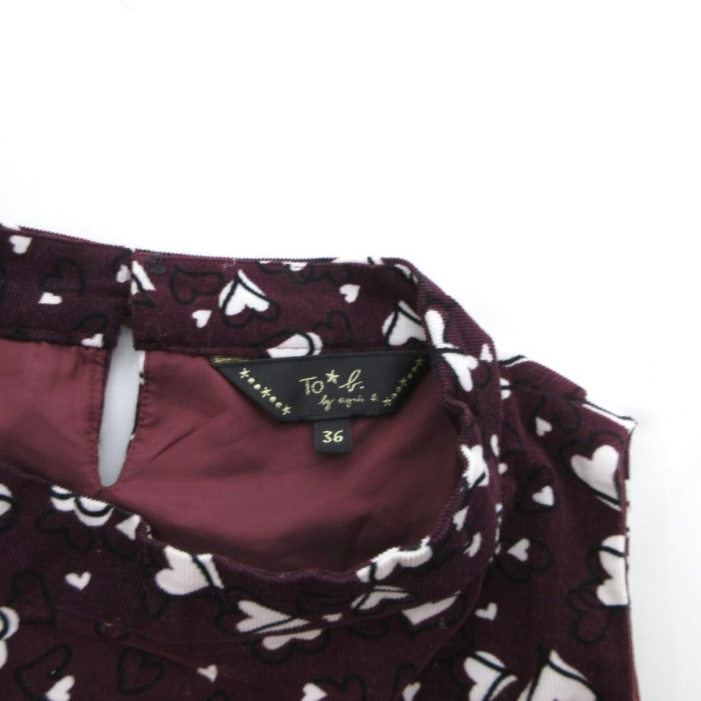 トゥービーバイアニエスベー To b. by agnes b. ワンピース ひざ丈 コーデュロイ ハート柄 36 紫 パープル /JS ■GY14 レディース