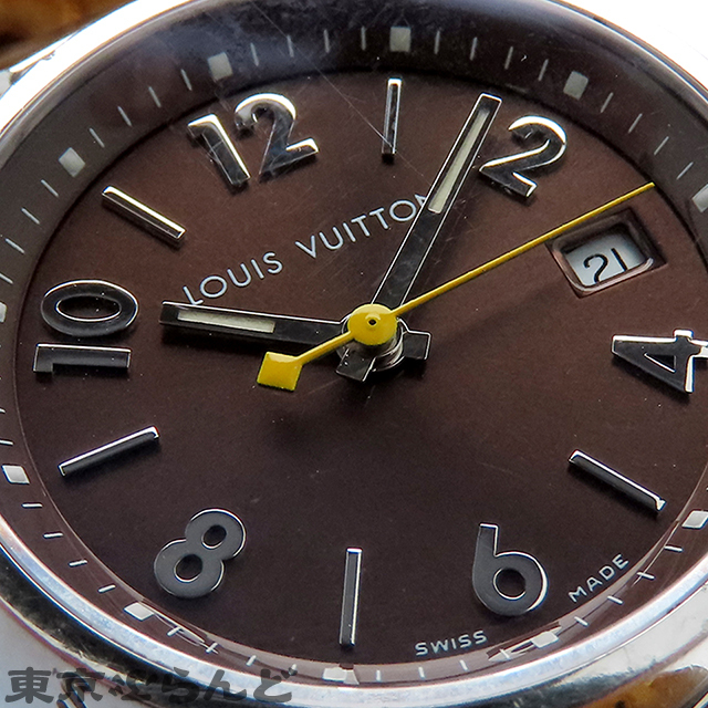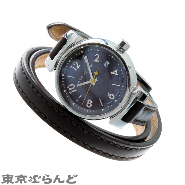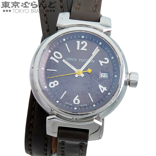 101817870 1円 ルイヴィトン タンブール Q12114 ブラウン SS レザー トリプルコイルド 箱・保証書付き 腕時計 レディース クォーツ 電池式