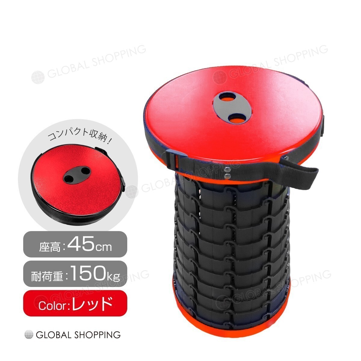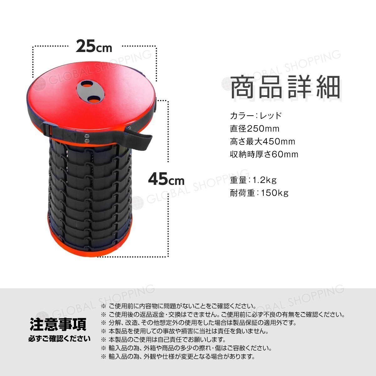 一秒開閉 超軽量 アウトドアチェア 折りたたみチェア キャンプ椅子 折り畳み式 チェア 6.5cm-46cm 高度自由 耐荷重150・ 伸縮 スツール 赤