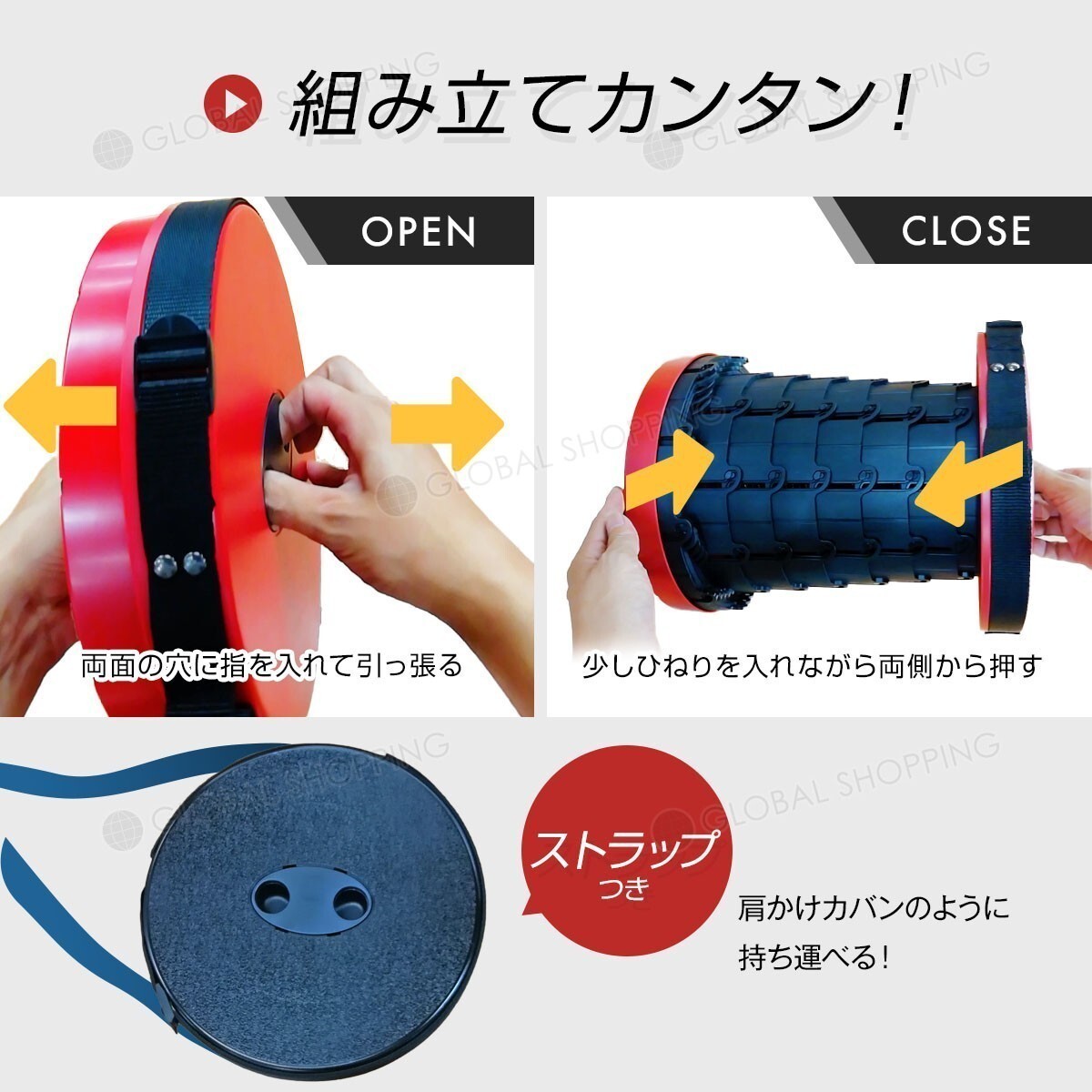 簡単で素早く開閉でき、高度自由調節アウトドアチェアです。展開する前にはまるいバックの形で、全然チェアの様子に見えないです。展開する後は高度46cmの椅子になり、更に好きな高度を選択して回転して調節できます。面白くて、携帯も収納も便利です!
