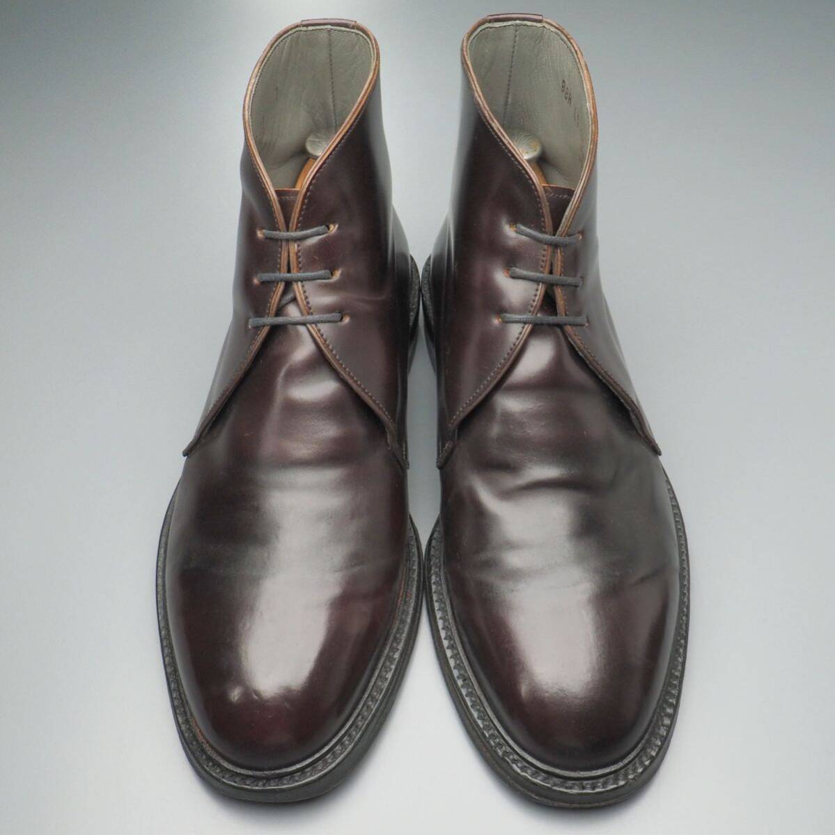 160年の歴史を持つアメリカントラッドの紳士靴ブランド「ジョンストン&マーフィー」の一足です。 ハリ・光沢のある深い茶のコードバンをアッパーに用いたオン・オフ両用のシンプルな3アイレットチャッカ。 底付けにはストームウェルト仕様の360度グッドイヤーウェルテッド製法を採用し、耐久性も高くデイリーな活躍が期待されます。 製法:グッドイヤーウェルテッド アウトソール:レザー トップリフト:ラバー ライニング:レザー 生産:日本製 ※撮影用のシューキーパーは付属致しません。 ※本物の商品ですのでご安心の上オークションをお楽しみ下さい。 ※タイトル頭の英数字は弊社の管理番号です。 ※ほかにも多数の商品を出品しています。 ※同梱に関しましては「まとめて取引」でのみ対応可能です、その他の方法での同梱対応は出来かねます。 (※商品の特性上、同梱対応出来ない商品もございますので予めご了承下さい。) |