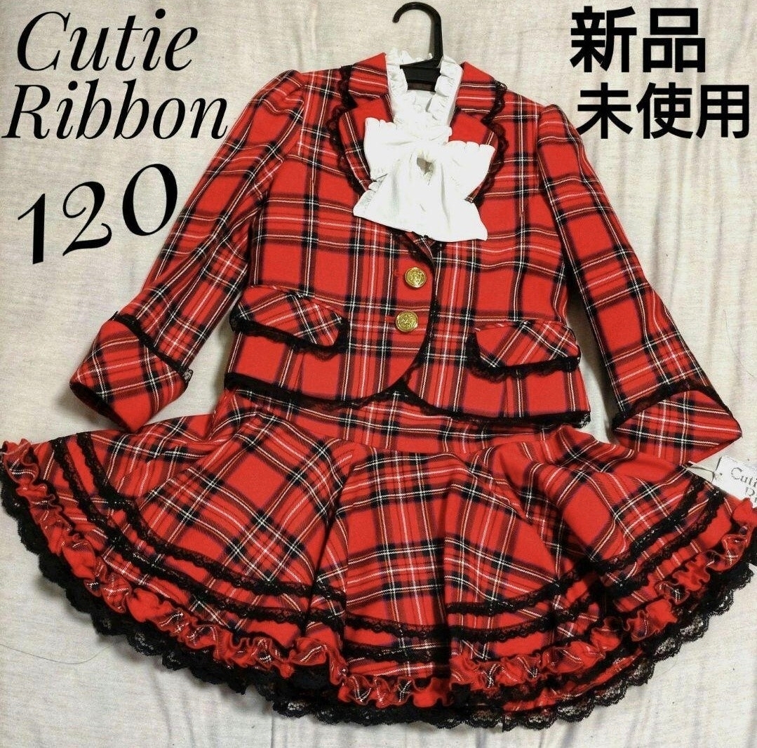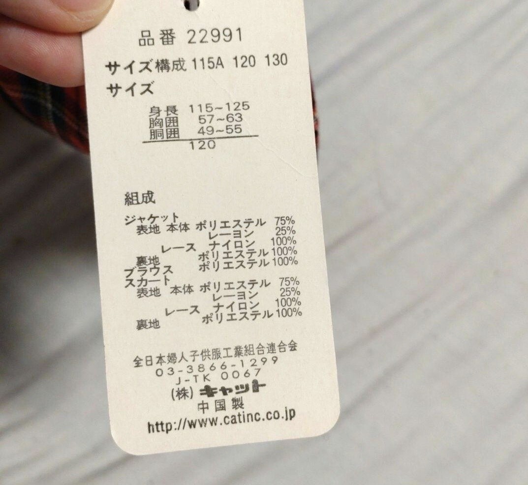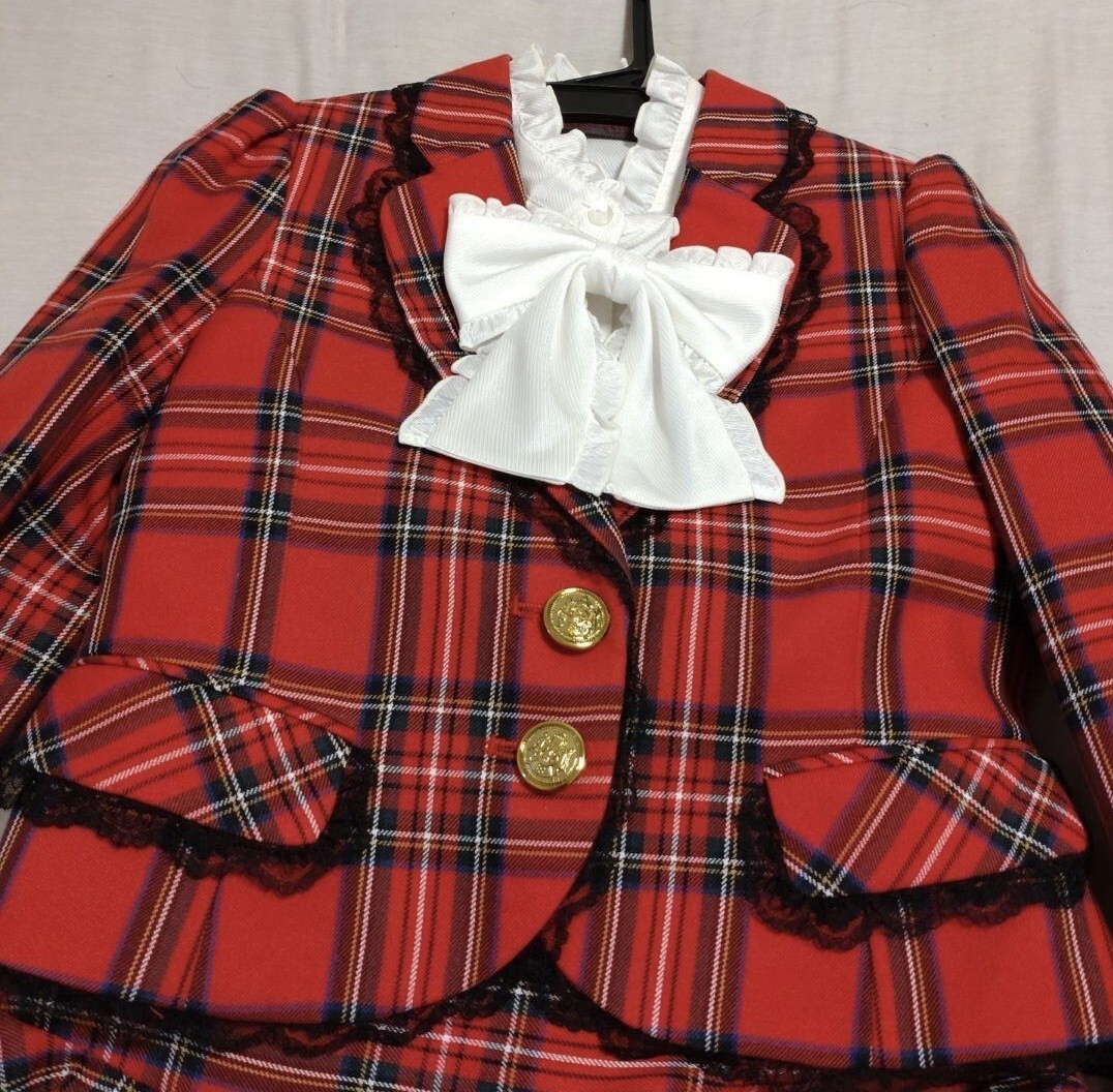 赤のチェック柄が特徴的なフォーマルドレス、120サイズ、未使用品。