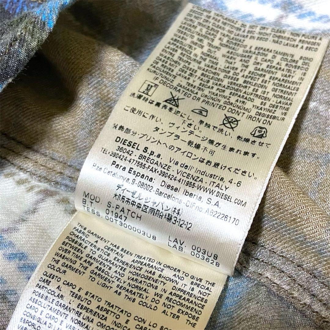 #DIESEL#ディーゼル#長袖#シャツ#パッチワーク#プリント#チェック柄#胸#ポケット#S#ルーマニア製#インポート#メンズ#男性#カジュアル#秋冬