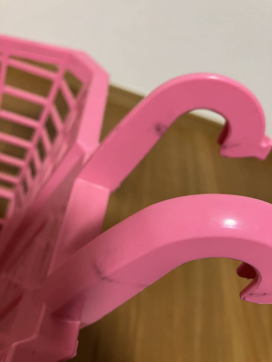 ビビッドピンクな色は珍しいです。付属品完備、画像③左側にスリキズ有り、画像④ウエットティッシュ等ではとれない程度の黒ずみ有り