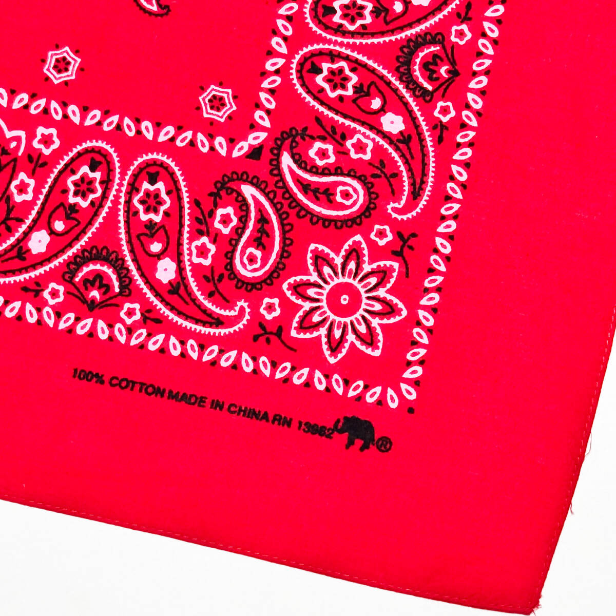 商品説明 | 米国製 MADE IN CHINA レッド ペイズリーバンダナです。 100% COTTON MADE IN CHINA RN13962 エレファントマーク 表記。 □素 材:100%コットン □カラー:レッド/ホワイト/ブラック □サイズ:53㎝×54㎝ 素材の風合いや淵のロックの仕様では90年代~2000年以降の米国製 MADE IN CHINA のバンダナと思われます。 CHINA MADE のバンダナは年代が浅いため使用感が少なく見た目的に状態が良いようです。 使用感はありますがコンディション良好の美品。 ご理解頂ける方いかがですか。 ハウスクリーニング済。 #BANDANA #バンダナ #ペイズリーバンダナ #エレファント #RN13962 |