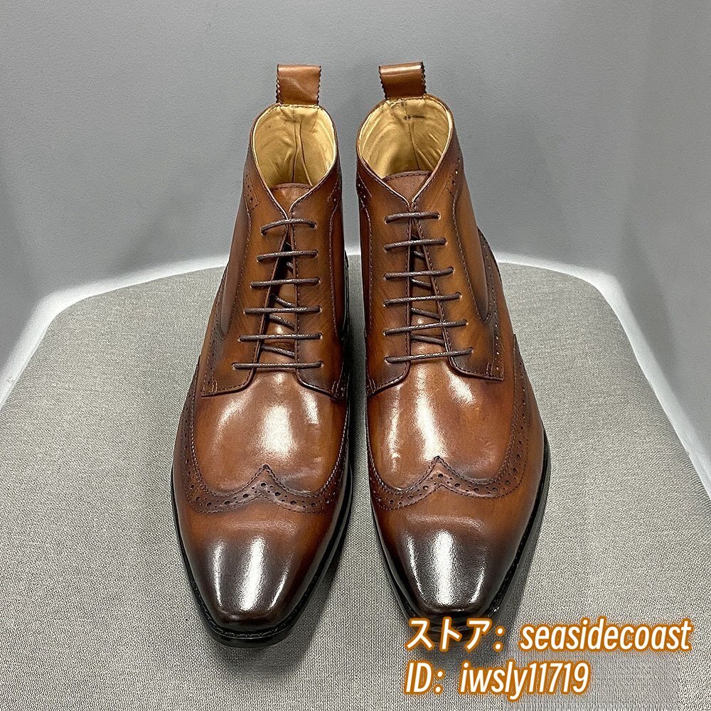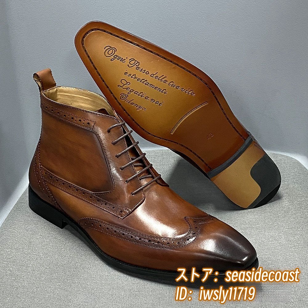 定価12万 新品 レザーブーツ 最高級メンズブーツ ショートブーツ 牛革 マーティンブーツ 本革エンジニアブーツ 職人手作り ブラウン 28.0cm