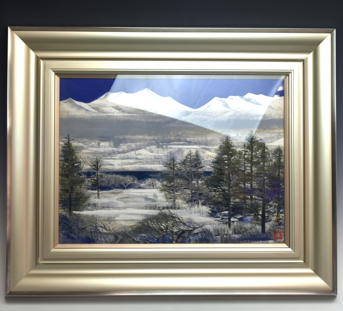 | 商品名 | 後藤純男 「北辺雪景」 8号 共シール 額 幅66cm 重量4.1kg 原画 本物保証 日本画の人気作家 Y2141【趣楽】 | ||