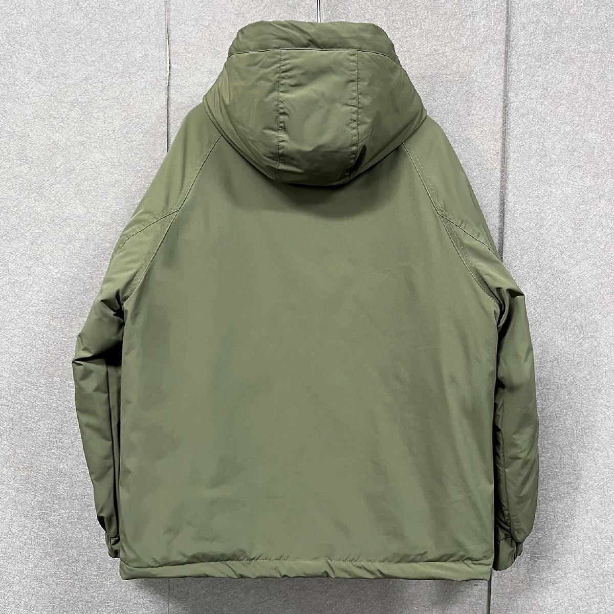 左胸と左袖にロゴ入り、スタイリッシュさをプラス。フード付きデザインしかもファスナーで首まで引上げ可能で、外部の冷たい空気を遮断することができます、しっかりと首まわりを保護されます。袖口はマジックテープで調整可能で、風が強い日などは締めて防風、温かさを保ちます。フードは取り外し不可となり、中にはドローコードが入って絞ることができます。裾部分もドローコード付き、シルエット調節がしやすくなっています。両側のポケットにファスナーがあって、小物紛失防止、便利に収納できます。