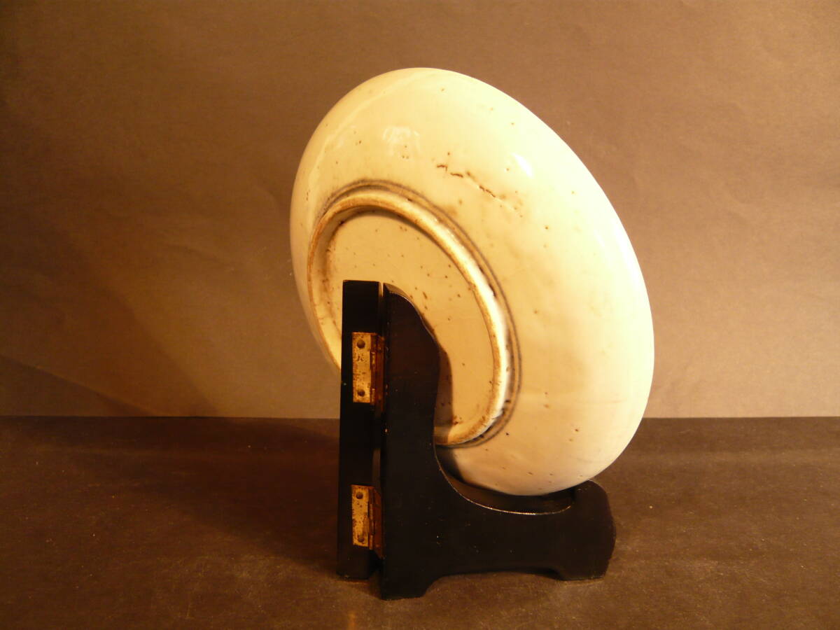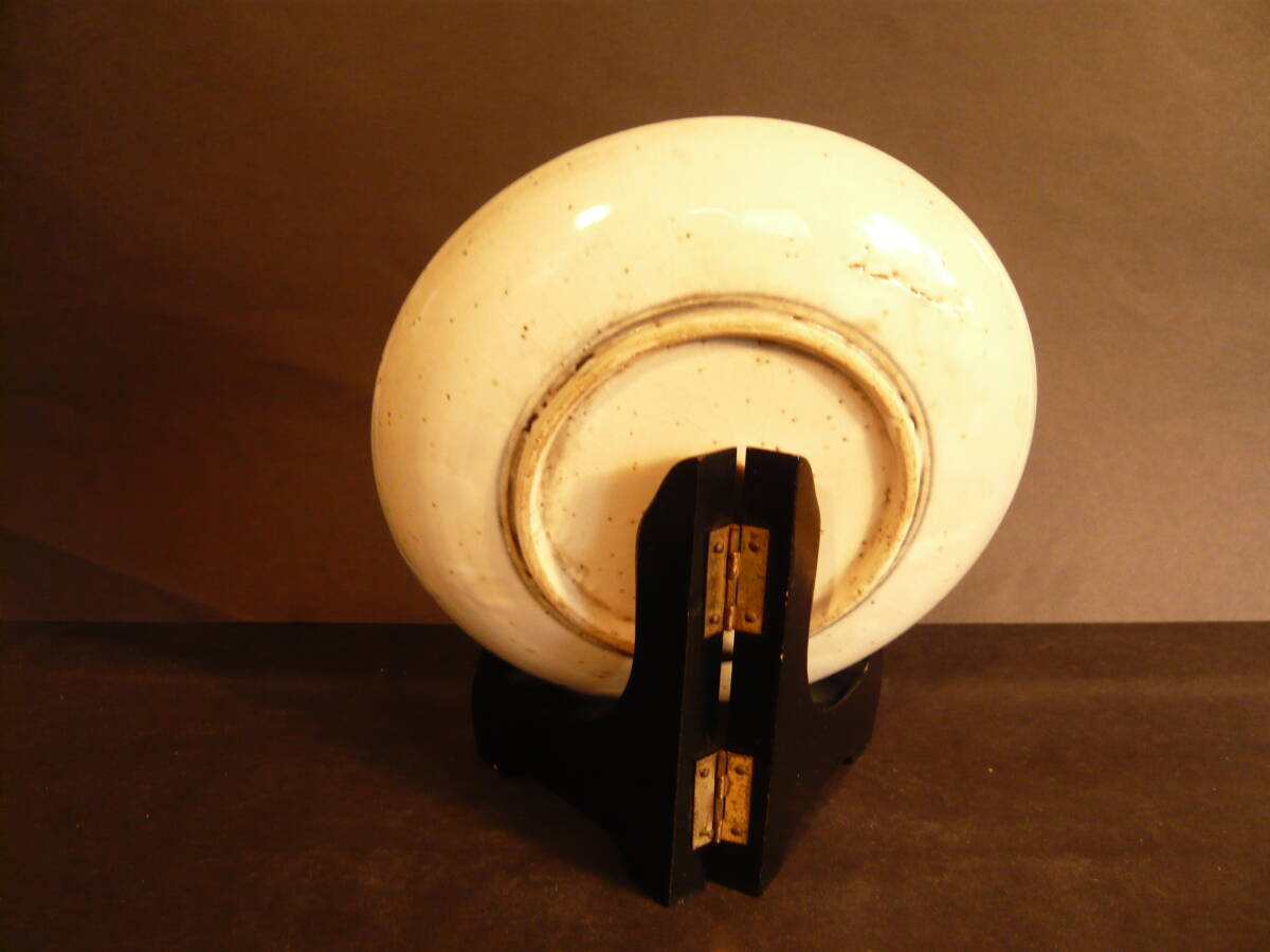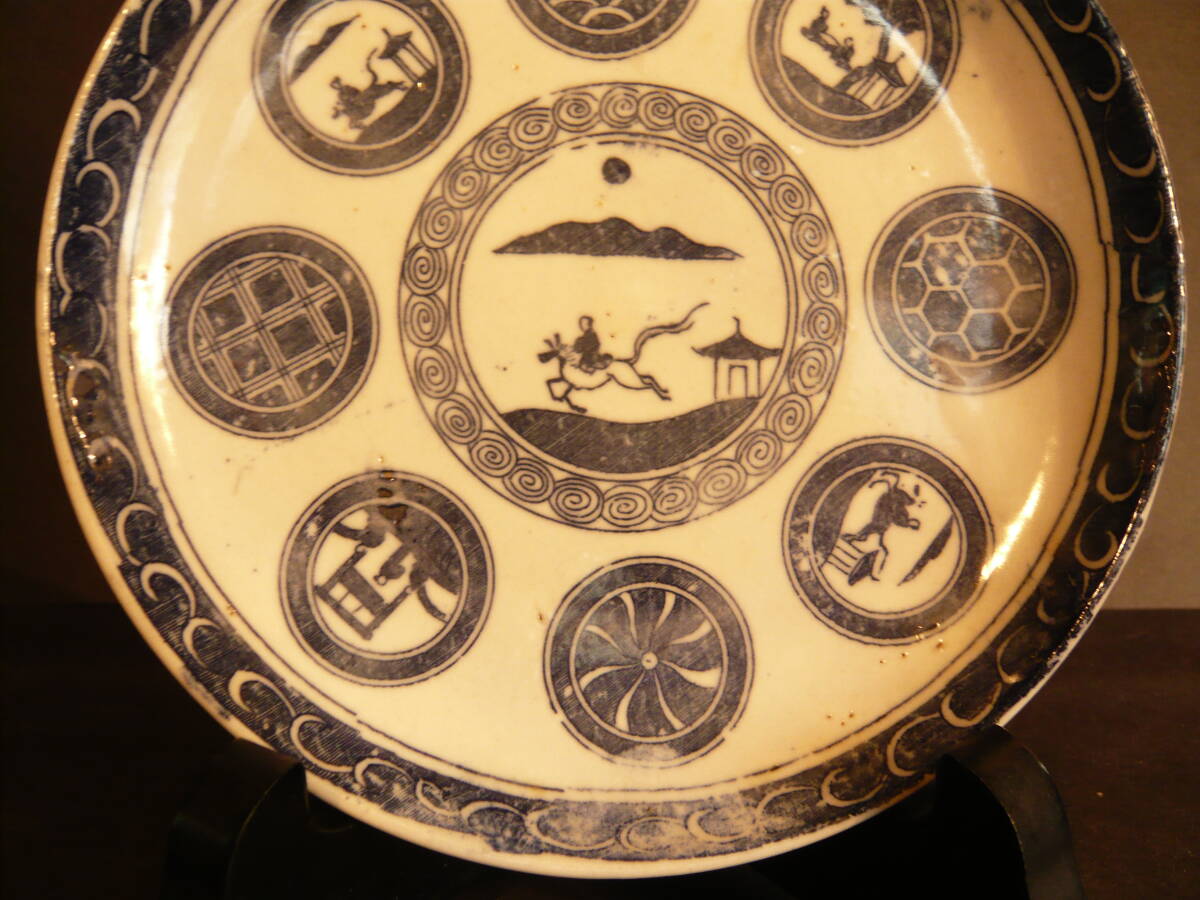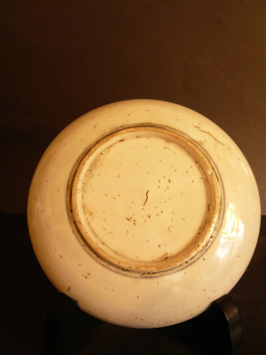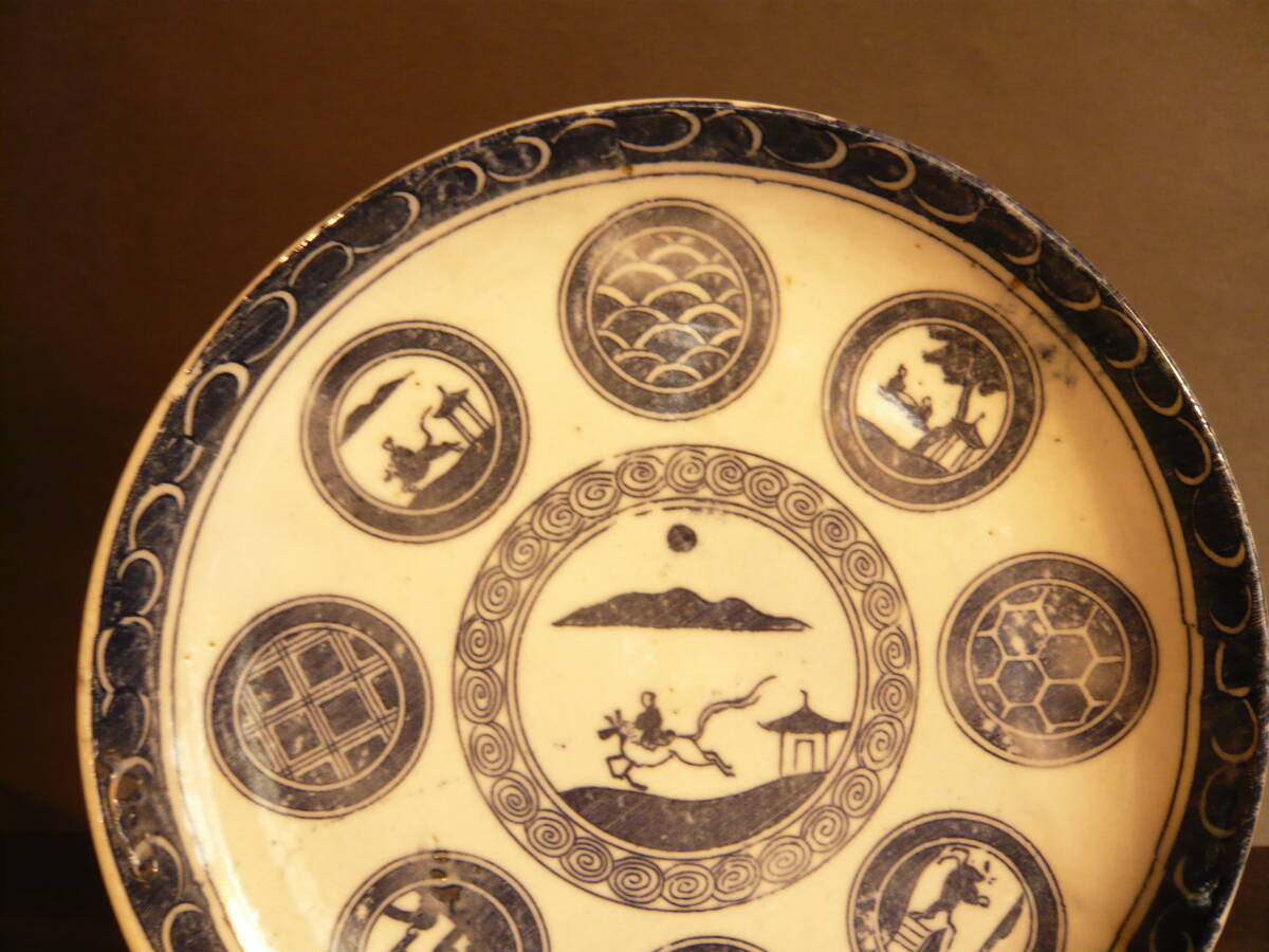印判染付の丸文中皿です、傷はありません。大きさは、直径約15.6センチ、高さ約2.5センチ、高台径約8.8センチです。