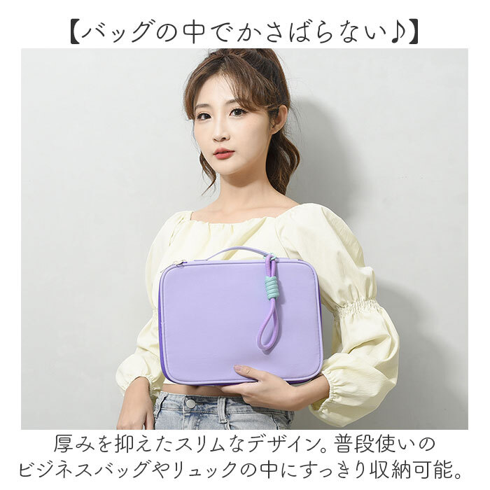 | 商品説明 | ・・【ノートPCもタブレットもOK!】 ・薄型PCやタブレットをすっぽり収納!シンプル&スリムな「パソコン タブレットケース」 ・【バッグの中でかさばらない♪】 ・厚みを抑えたスリムなデザイン。普段使いのビジネスバッグやリュックの中にすっきり収納可能。 ・【機器の取り出しがスムーズ】 ・開口部は側面まで大きく開くダブルファスナーを採用し、PCやタブレットの取り出しがスムーズ。 ・【肉厚クッションが衝撃吸収】 ・内側には肉厚なウレタンクッションを内蔵。持ち運び中の衝撃からモバイル機器を保護。 ・【便利なポケット】 ・イヤホンや電源ケーブルなど周辺機器をまとめて収納できるファスナーポケット付き。 ・【ペン差しループ付き】 ・メインルームの中央に、ボールペンやタブレットペンを収納できるペン差しループも搭載。 ・【手提げ&ストラップの2WAY】 ・サイドに持ち手付きだからバッグ単体で持ち運びOK!カラビナで取り外しできるストラップ付き。 ・【雨の日も安心・はっ水加工】 ・外側の生地ははっ水コーティング加工済み。雨粒を弾くので、雨の日の持ち歩きも安心! ・(※1)水滴がかかってから長時間そのままにしておくと、水が染みこむことがございます。濡れたらすぐに乾いた布で拭き取るようにしてください。 ・【デバイスに合わせてチョイス】 ・お手持ちのデバイスに合わせてサイズが選べる「11inch」「13inch」「15inch」の3サイズ。 ・(※2)お手持ちの機器のサイズをよくご確認の上、ご購入ください。 ・【合わせやすいシンプルカラー】 ・配色がおしゃれなベーシック&かわいいパステルカラーを中心にラインナップ。 |