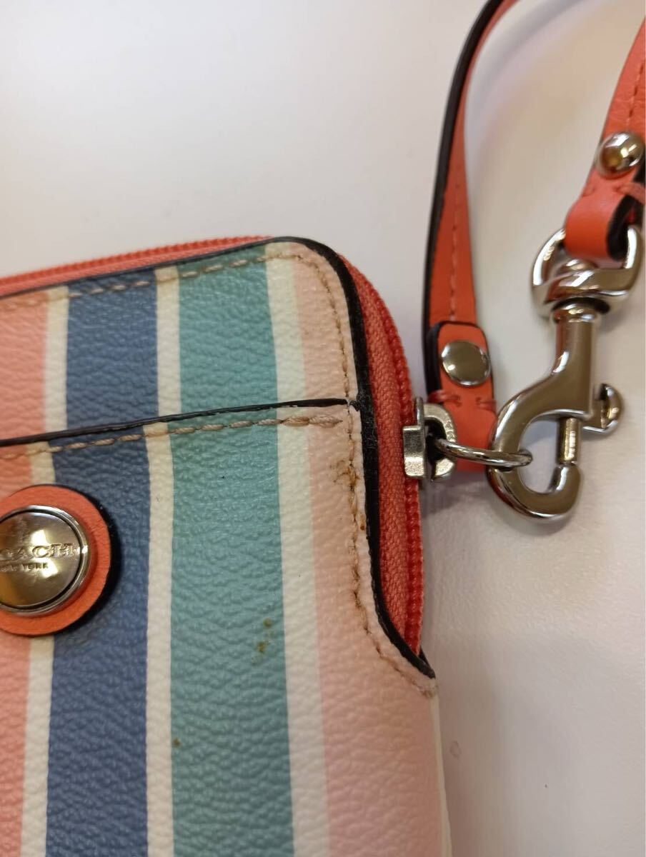 【中古品】 COACH コーチリストレット マルチカラー ストライプ ポーチ 小物入れ 現状品