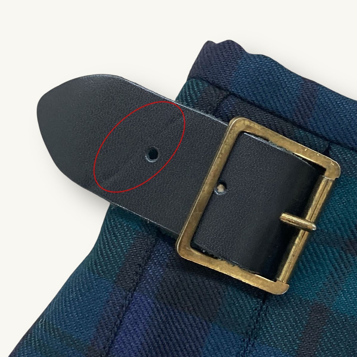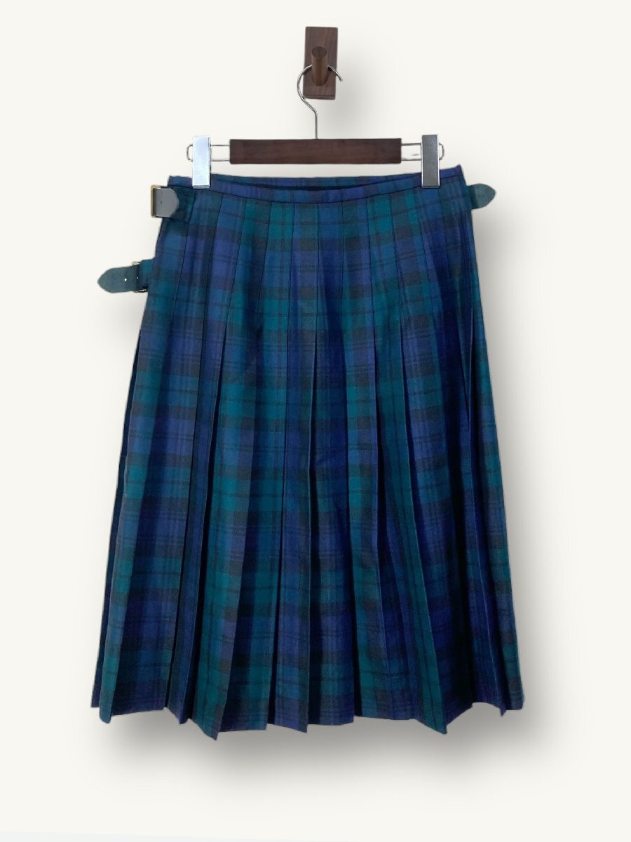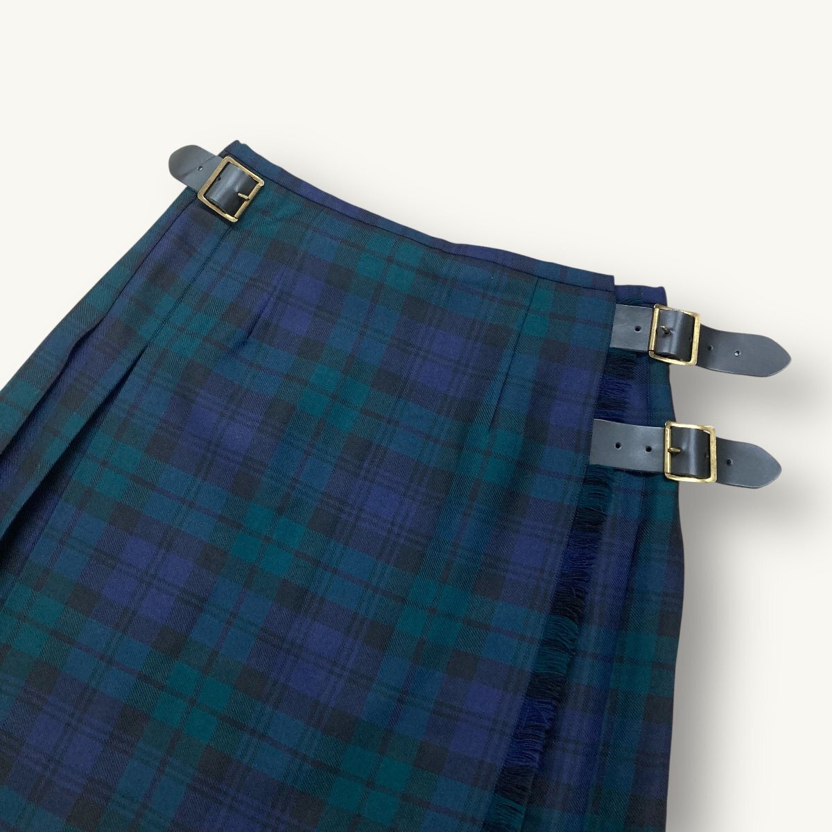 スコットランドの伝統的なキルトスカートのデザインで、ウエスト左右のベルトで着脱とサイズの調節が可能な仕様です。