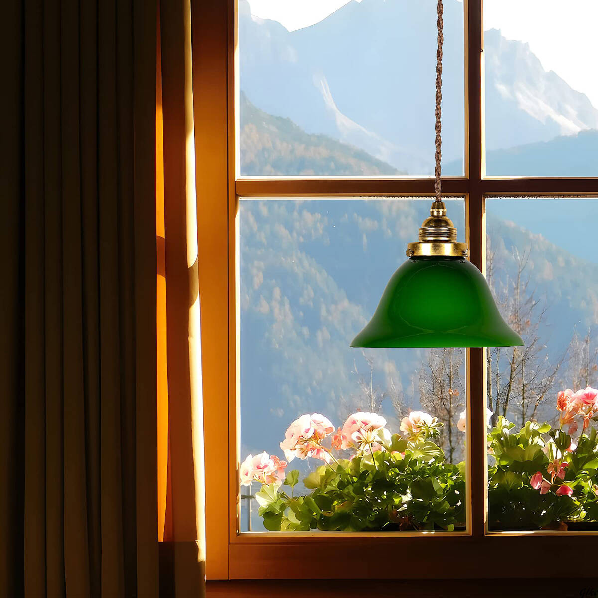シンプルなデザインでありながら、真鍮のソケットとガラスシェードが上品に調和するペンダントライトです。