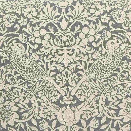 「モダンデザインの父」と呼ばれるウィリアムモリスの「イチゴ泥棒」柄を織り込んだファブリックで、ジェニファーテイラーとウィリアムモリスのコラボレーションです。