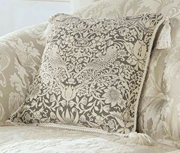 輸入雑貨 クッション タッセル ジェニファーテイラー ウィリアムモリス イチゴ泥棒 リビングスタジオ Jennifertaylor 33229CU 送料無料