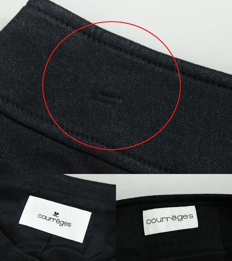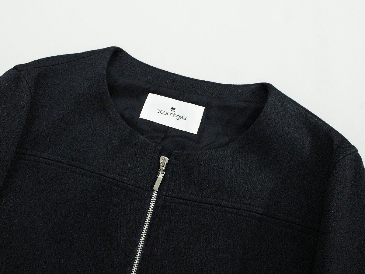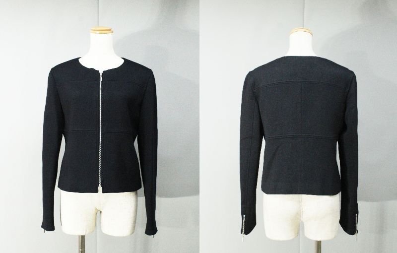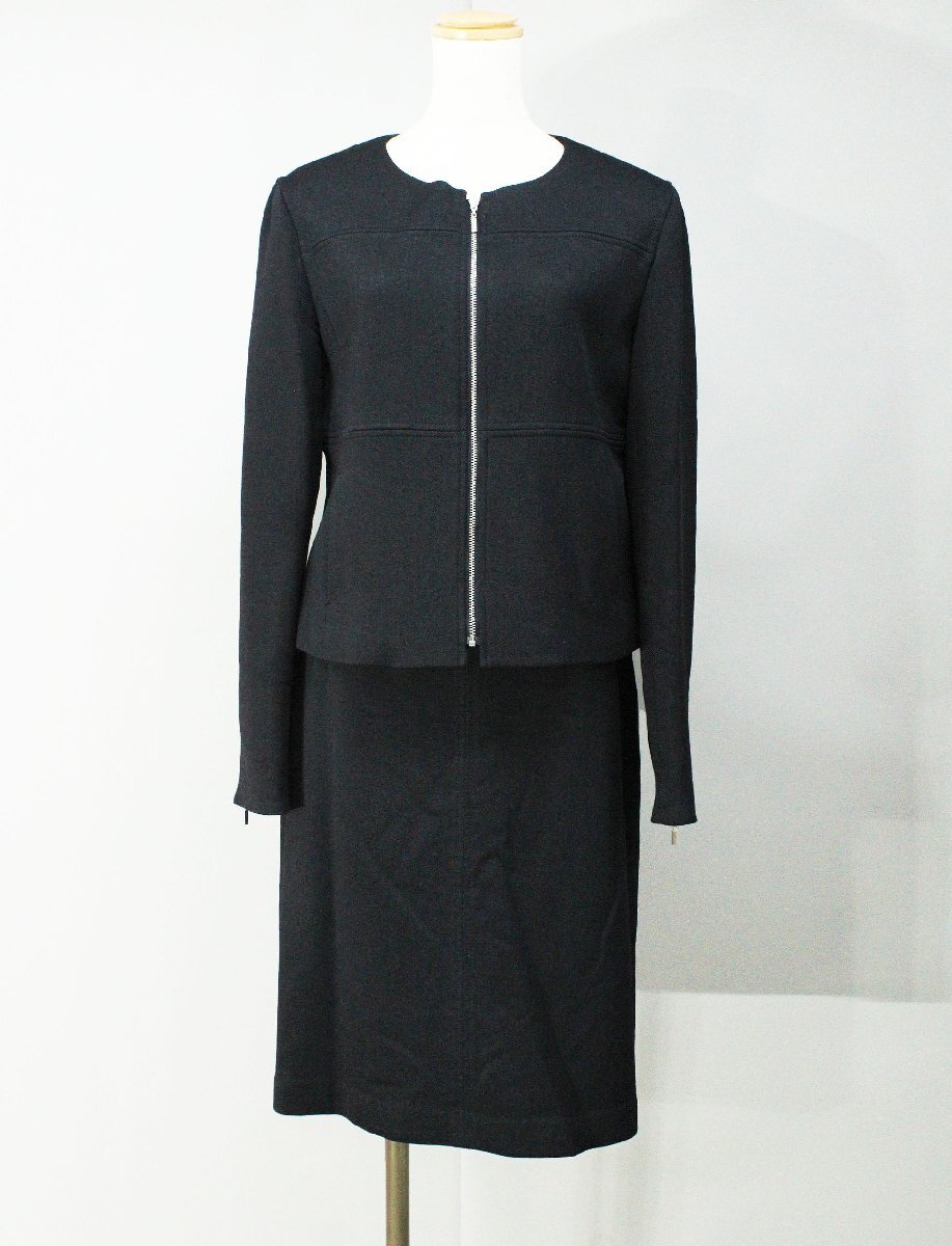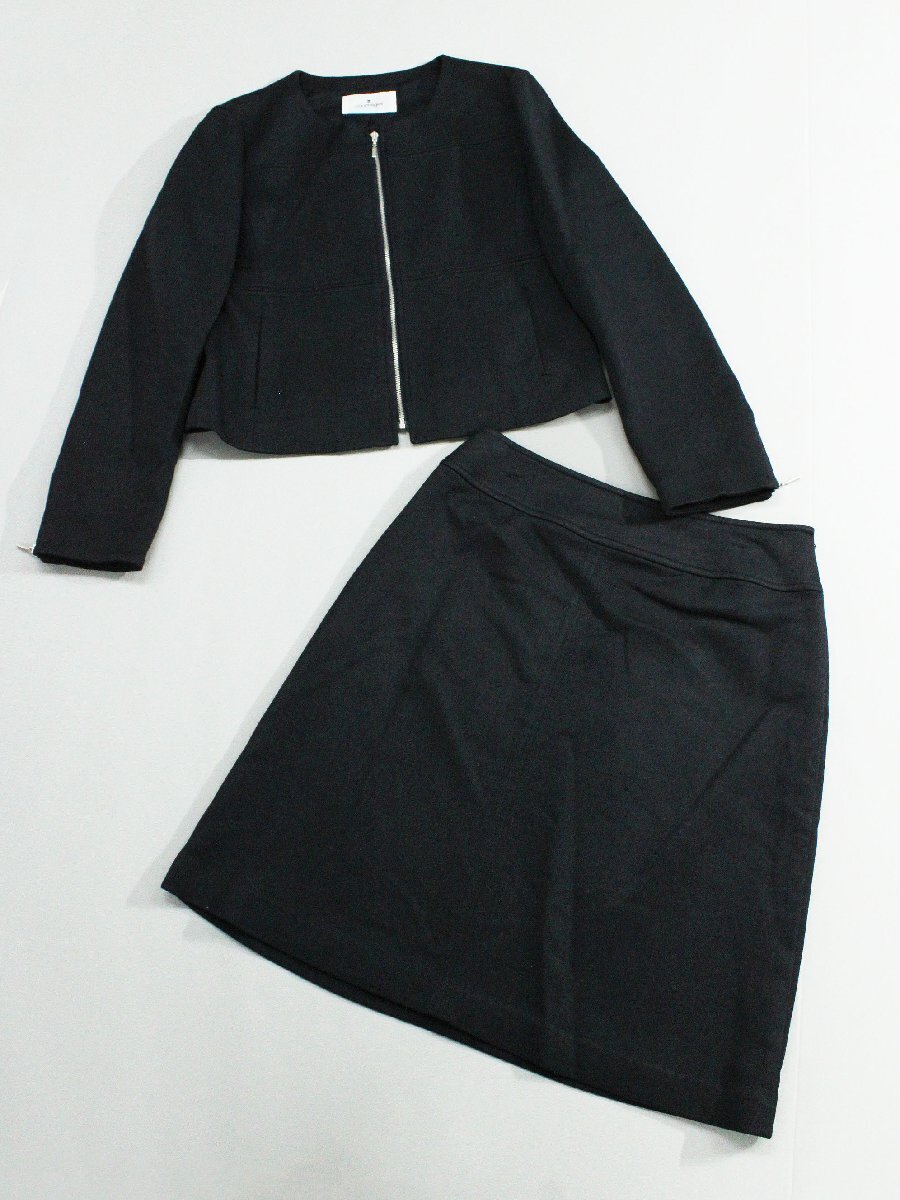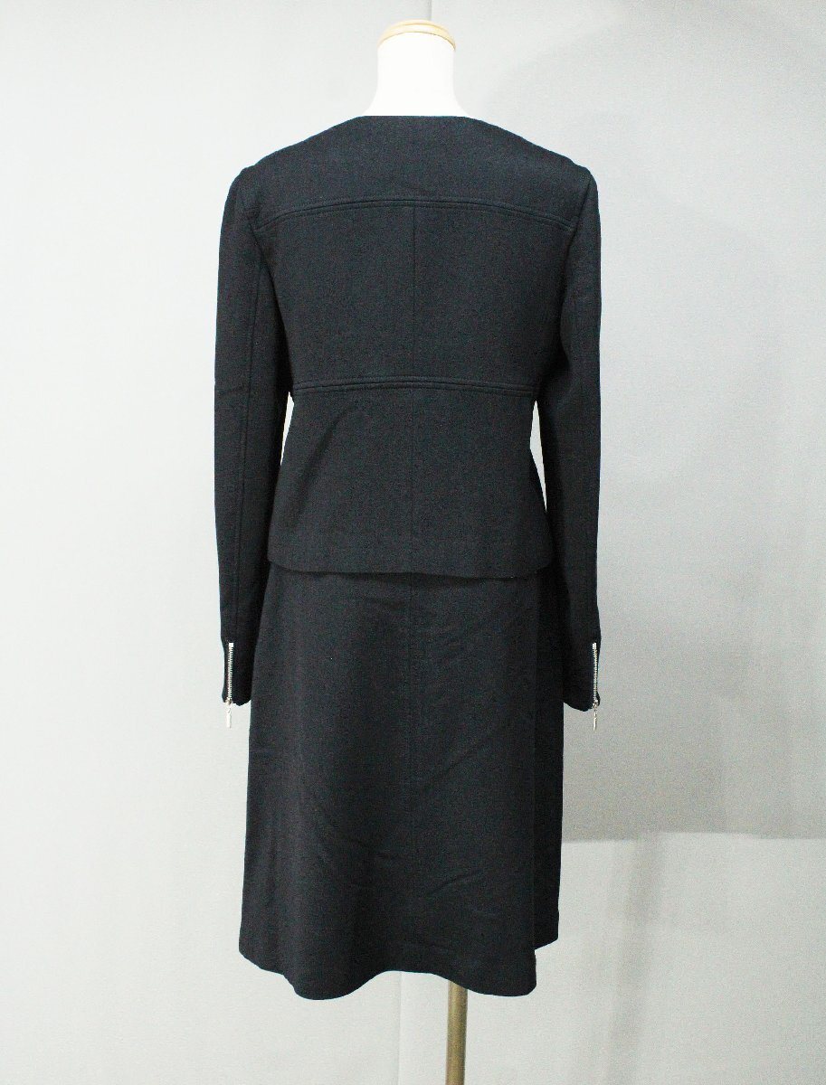 美品 クレージュ コットン無地セットアップ/ノーカラージャケット/膝丈スカート 濃紺40 rl920