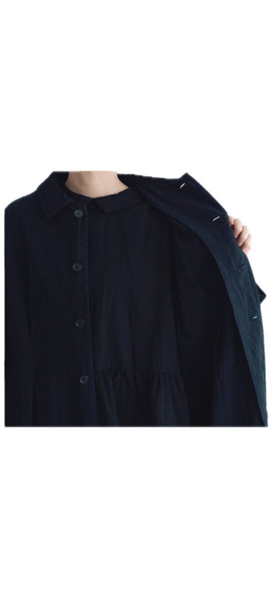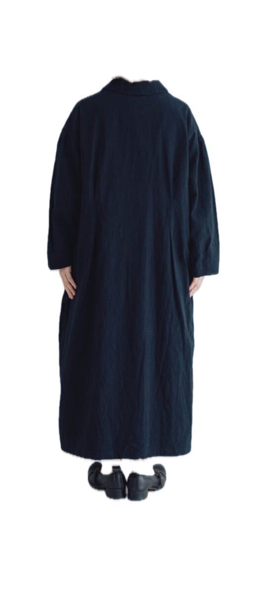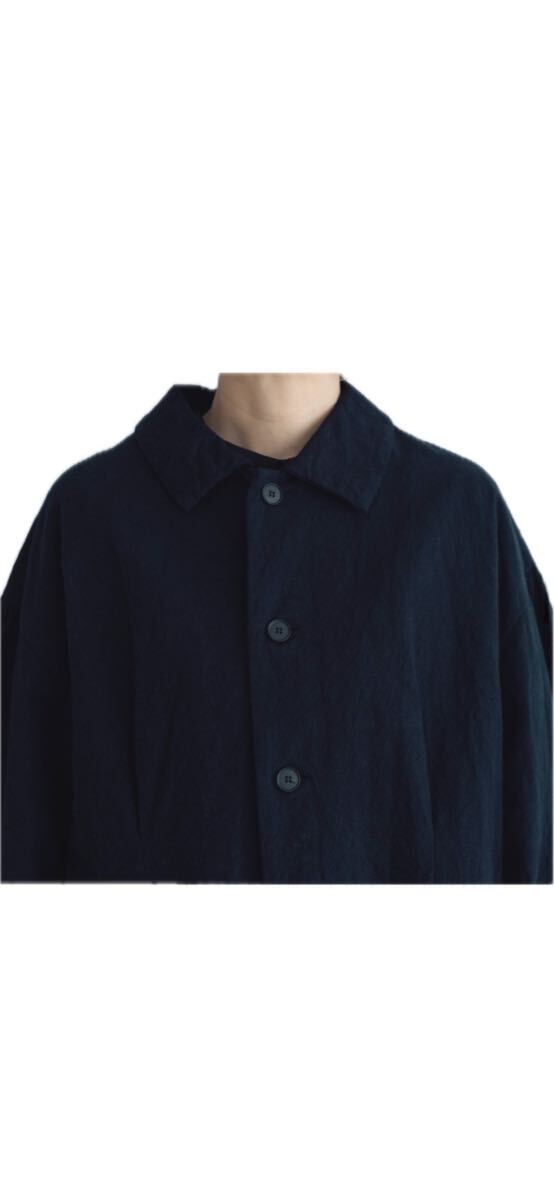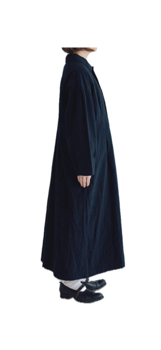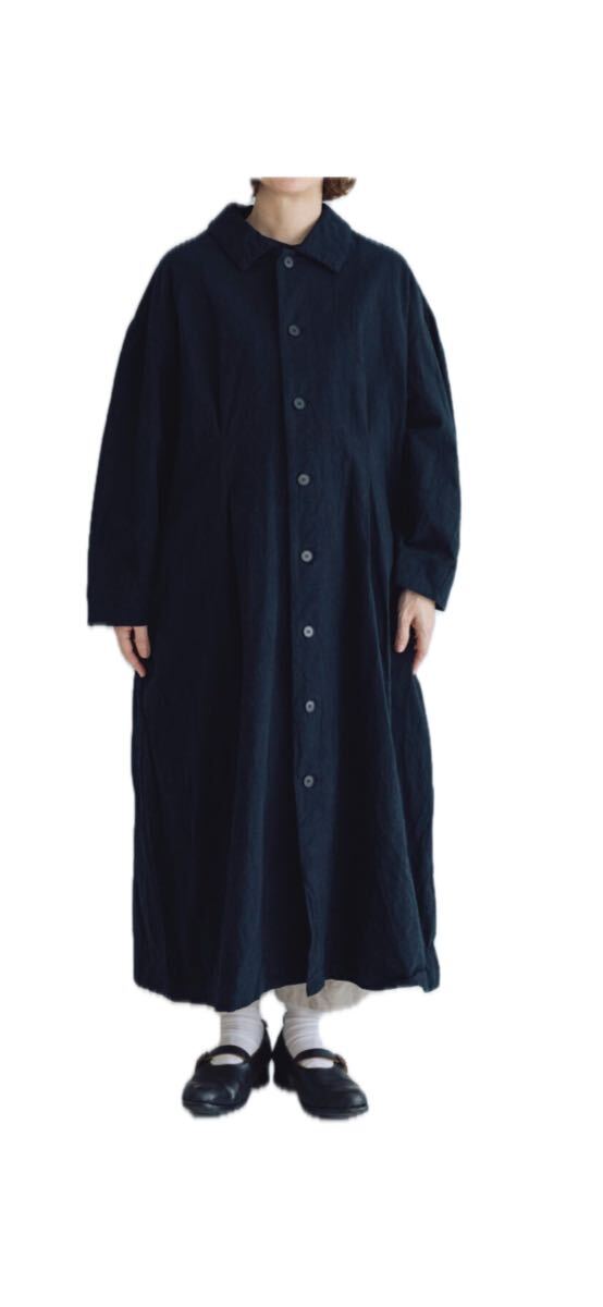 古布のような色合いと風合いを再現された生地のコート。サッと羽織るだけで雰囲気の出る1枚になりそうです
