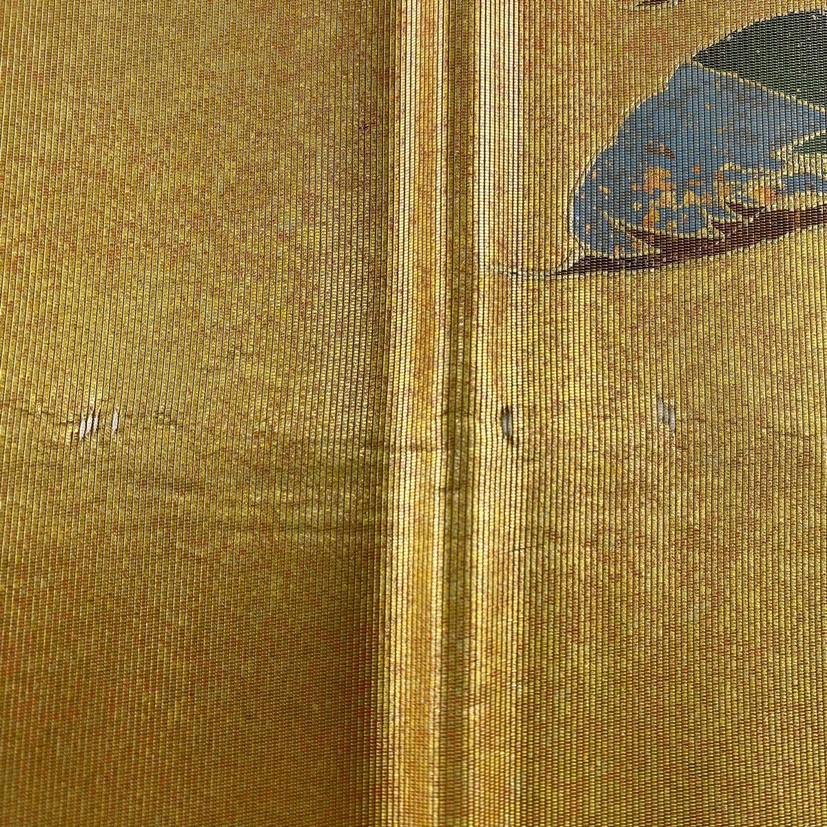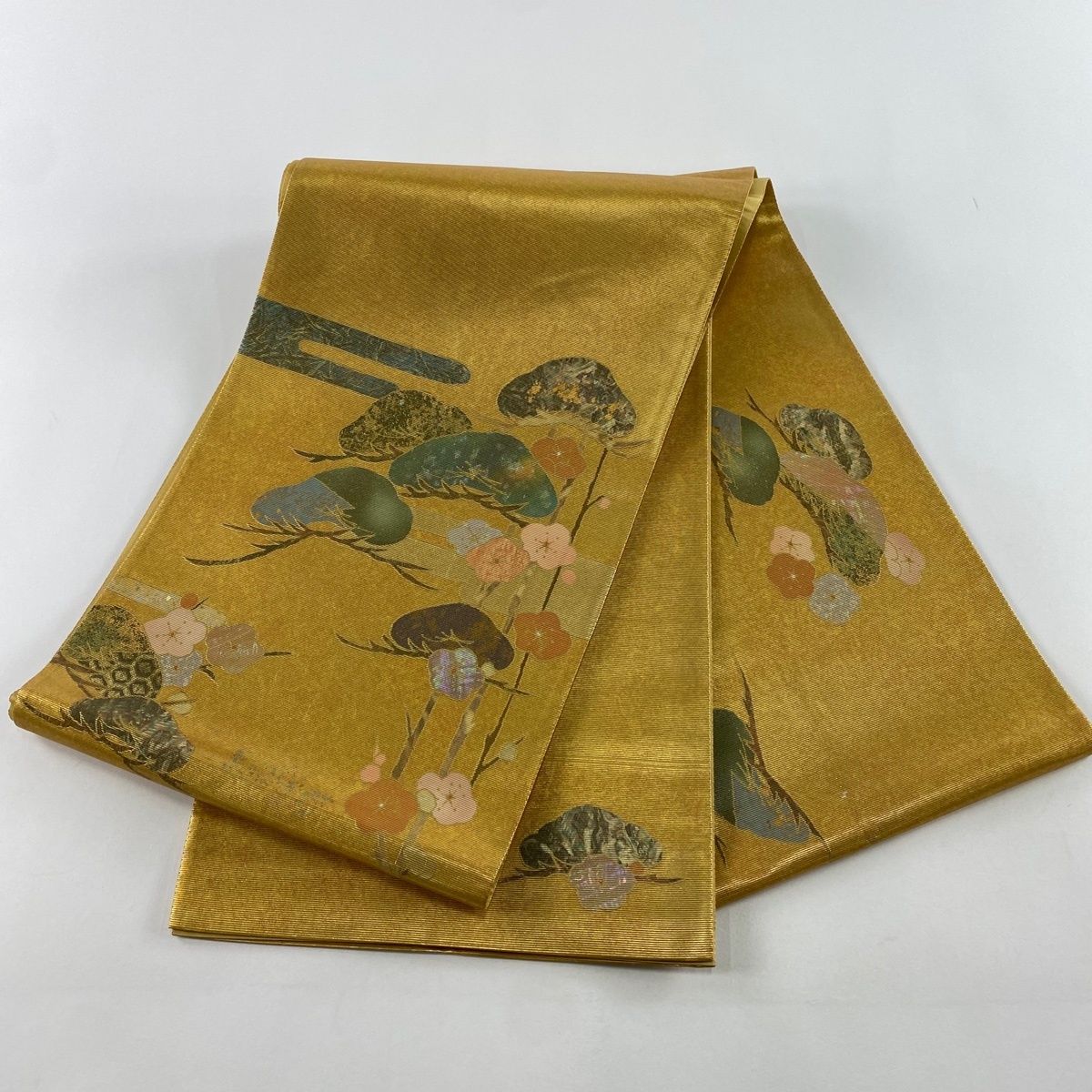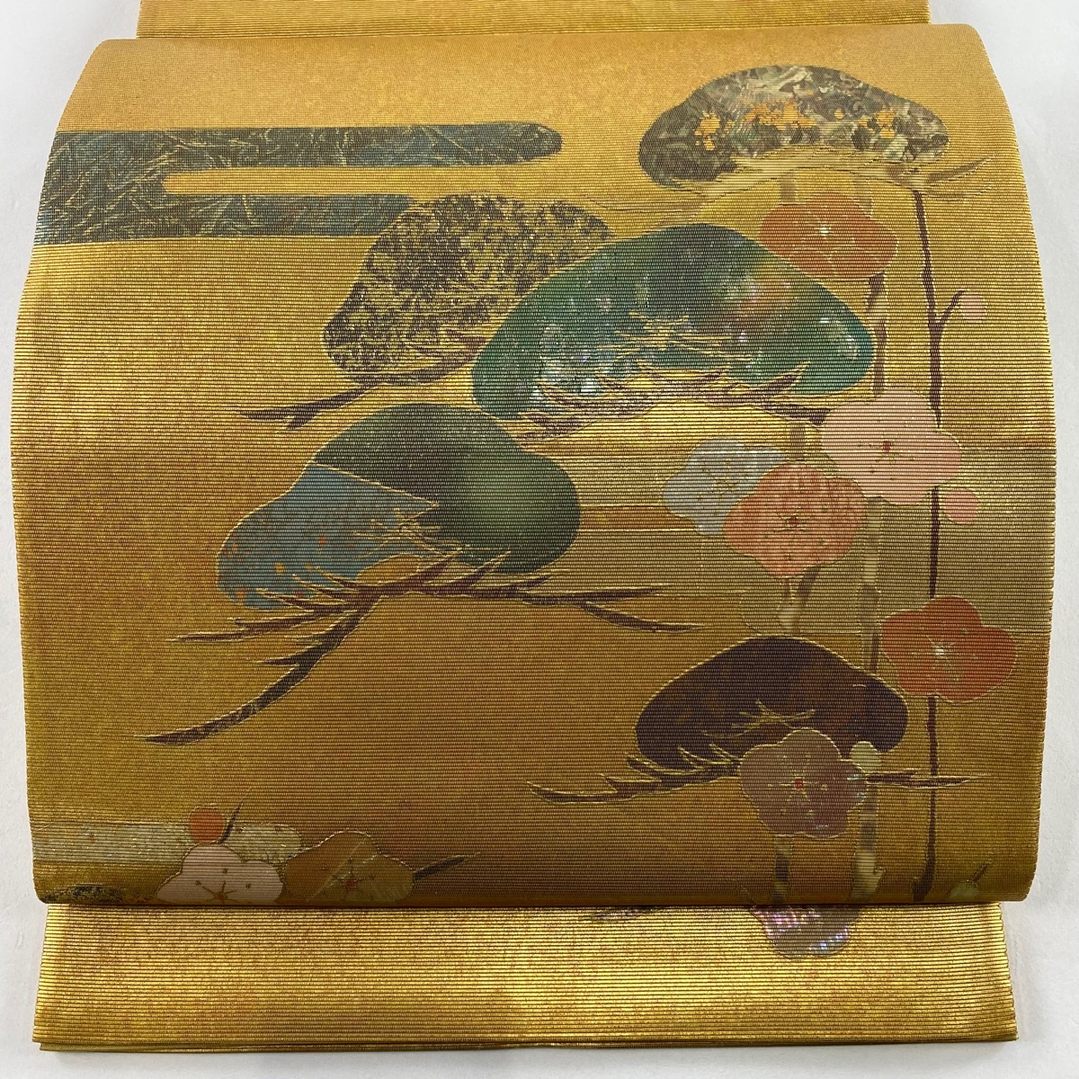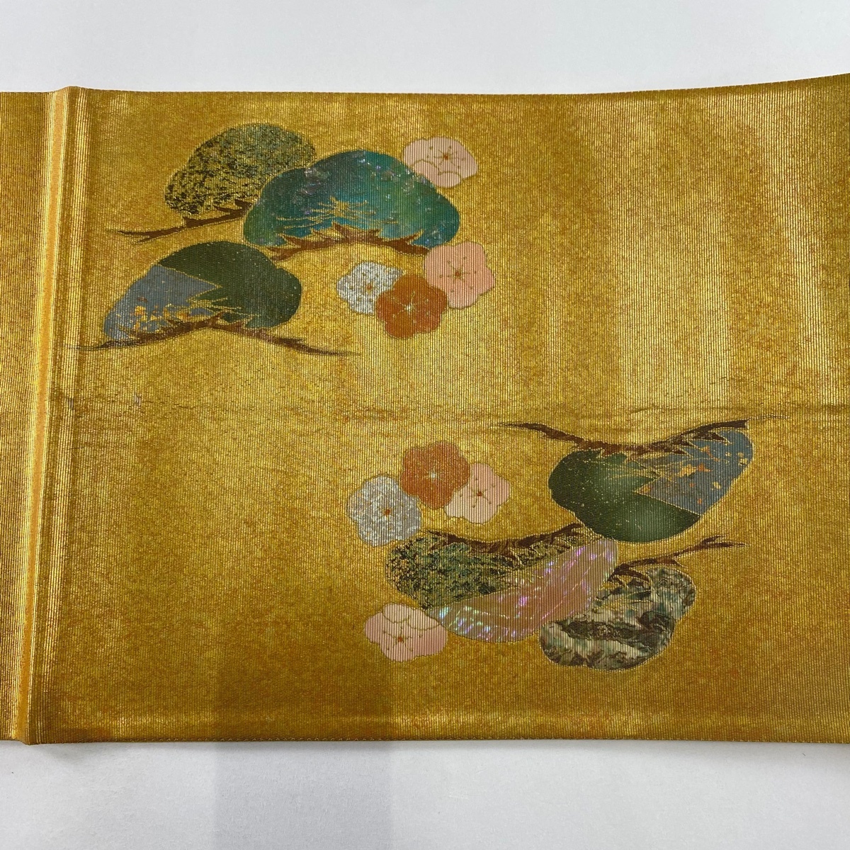 | 袋帯 秀品 手織 螺鈿箔 松梅 ヱ霞 金彩 金色 お太鼓柄 正絹 【中古】 |