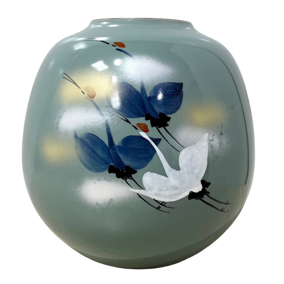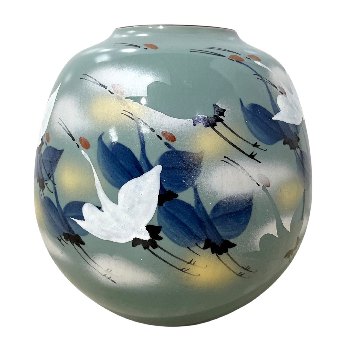 蘇さ(MtY2214) 花瓶 九谷焼 群鶴 陶芸 陶器 工芸品 アンティーク 中古品 100サイズ