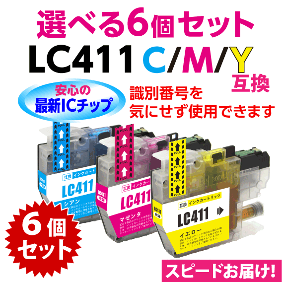 ブラザー 互換インクカートリッジ LC411-C/M/Y(染料インク)から 選べる6個セット
