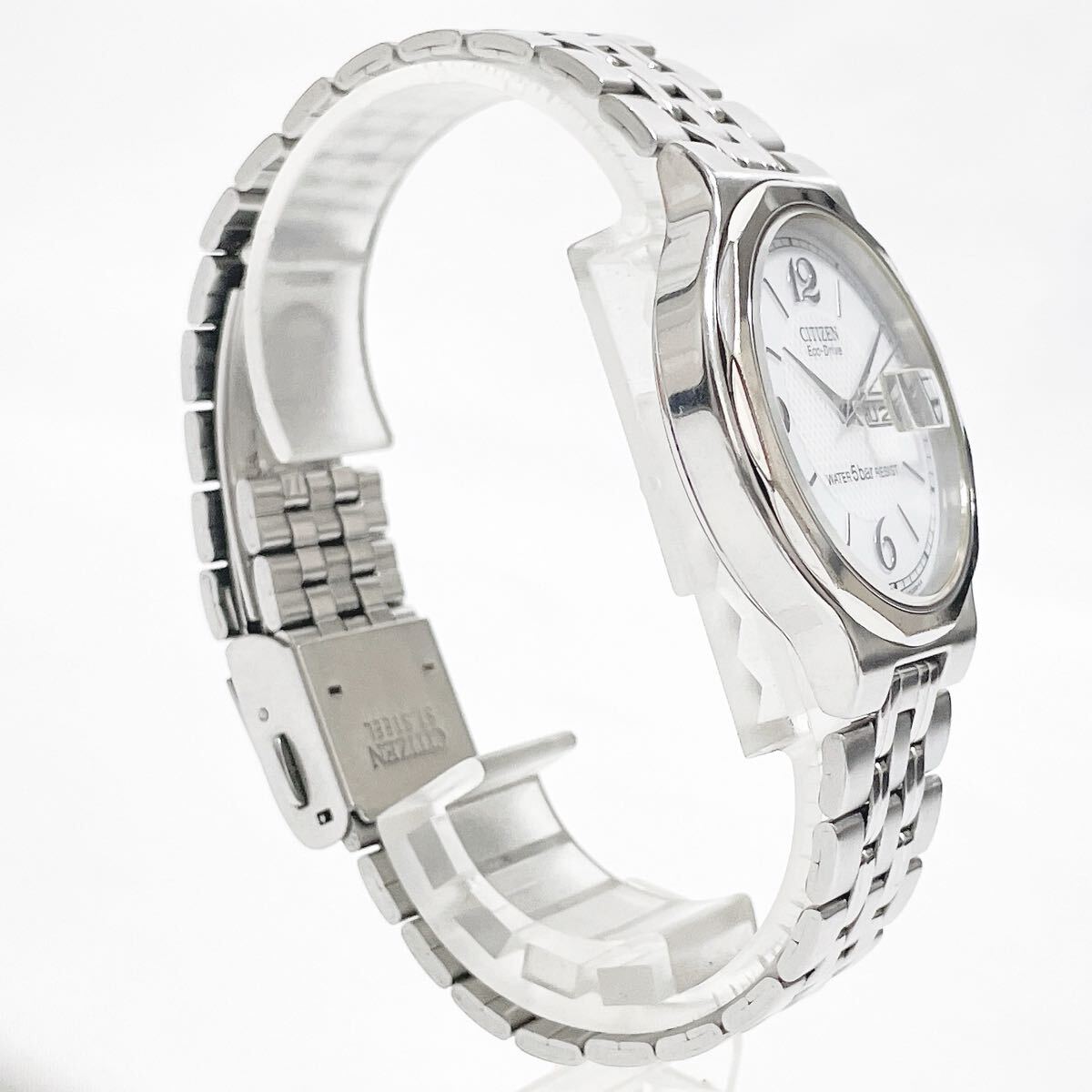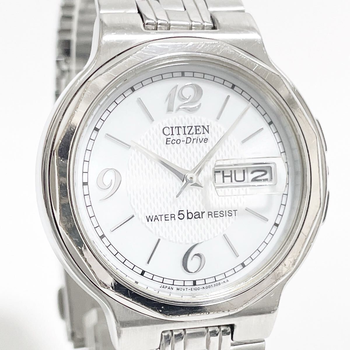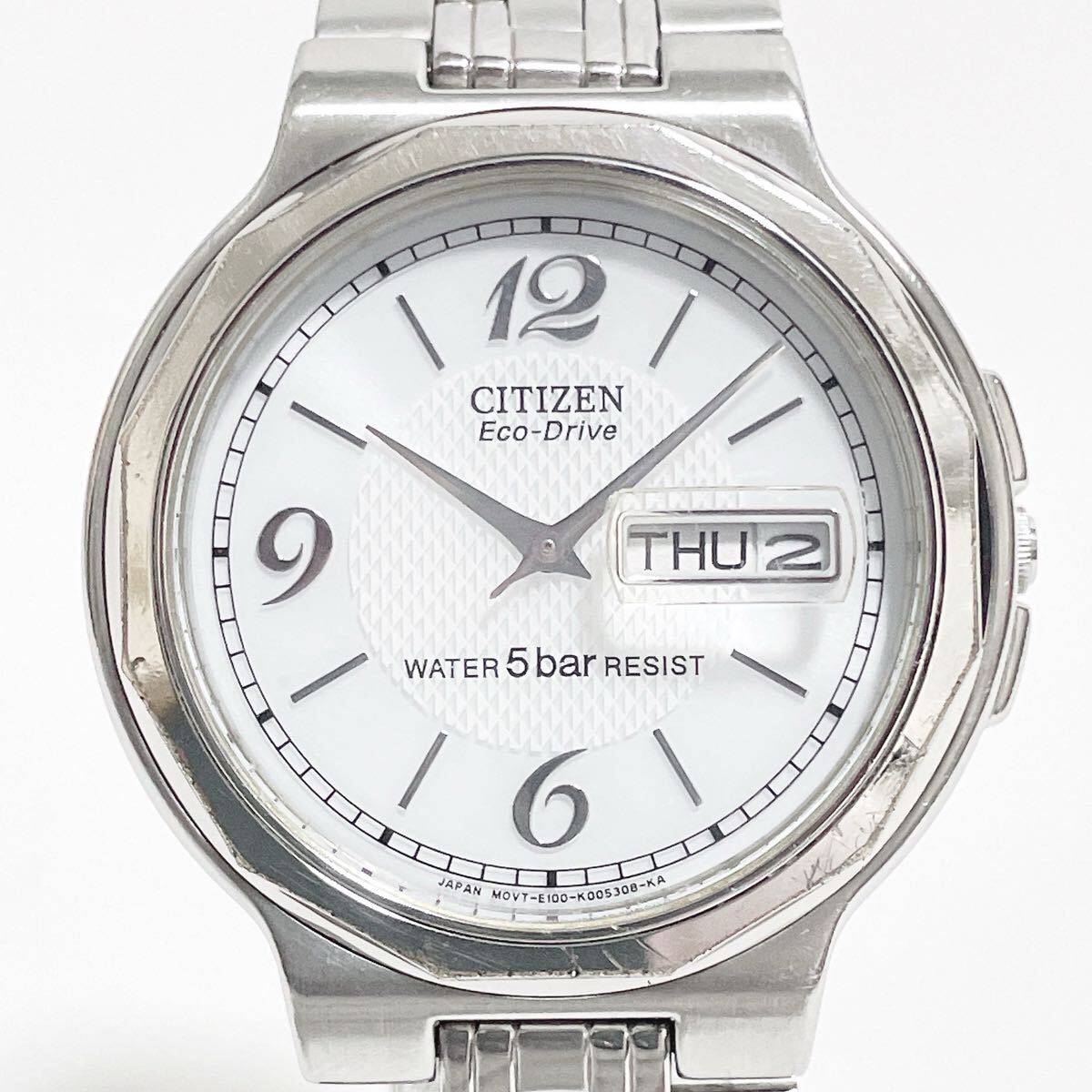 美品 稼働品 CITIZEN シチズン エコドライブ E100-K003334 CK シルバー ホワイト デイデイト SOLAR ソーラー メンズ腕時計 純正ベルト