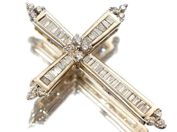 1円~【ジュエリー極】人気クロスデザイン!天然ダイヤモンド0.35ct 高級K18YGペンダントヘッド a2629ok【送料無料】