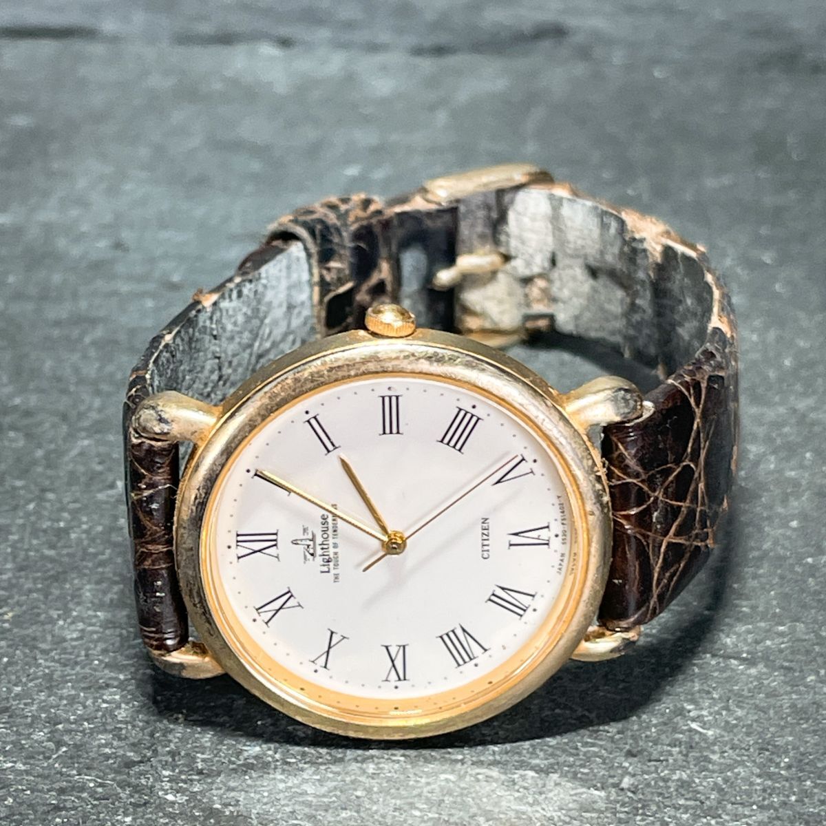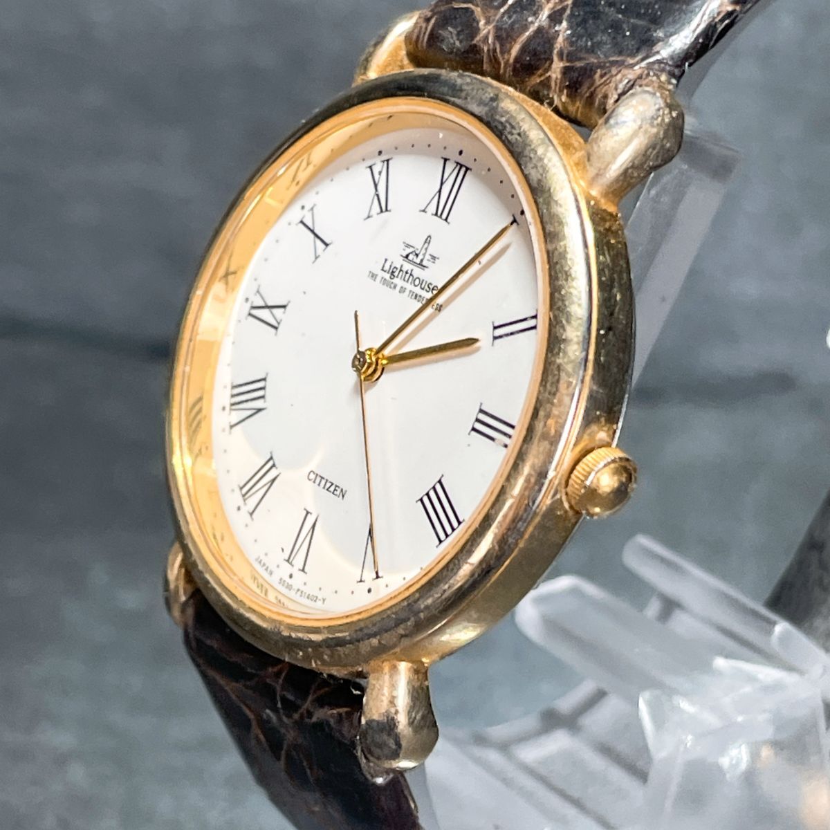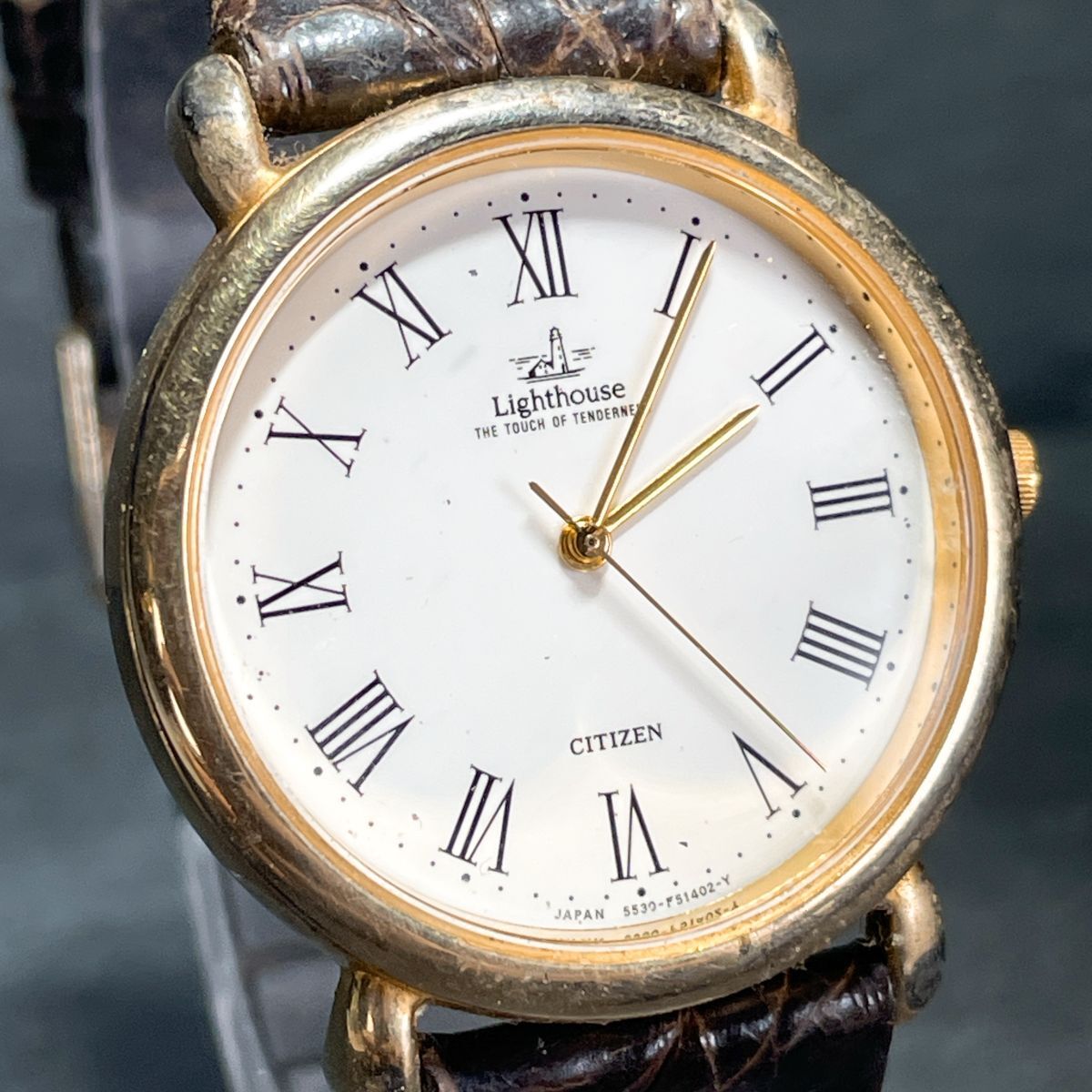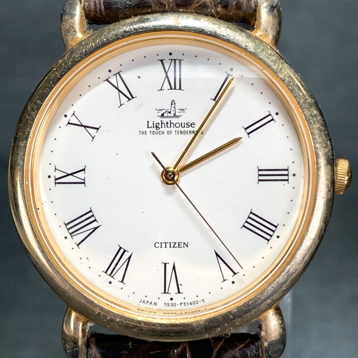 美品 CITIZEN シチズン Light house ライトハウス 5530-F50425 腕時計 アナログ クオーツ 3針 レザーバンド ブラウン ステンレススチール